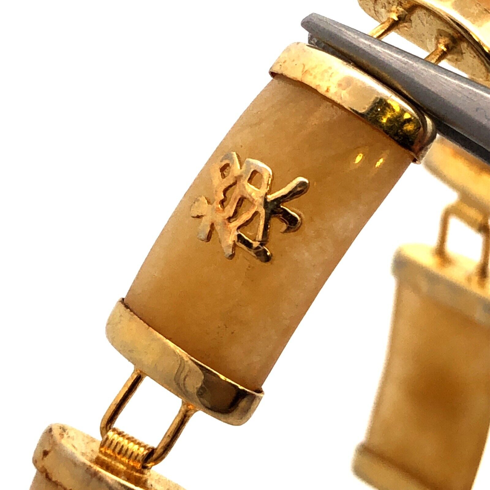 925 Sterling Silver Estate Vermeil Yellow Jade Chinese Luck Longevity Bracelet