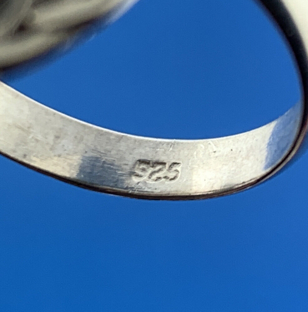 - 925 Sterling Silver Green Black African Turquoise Statement Dome Ring