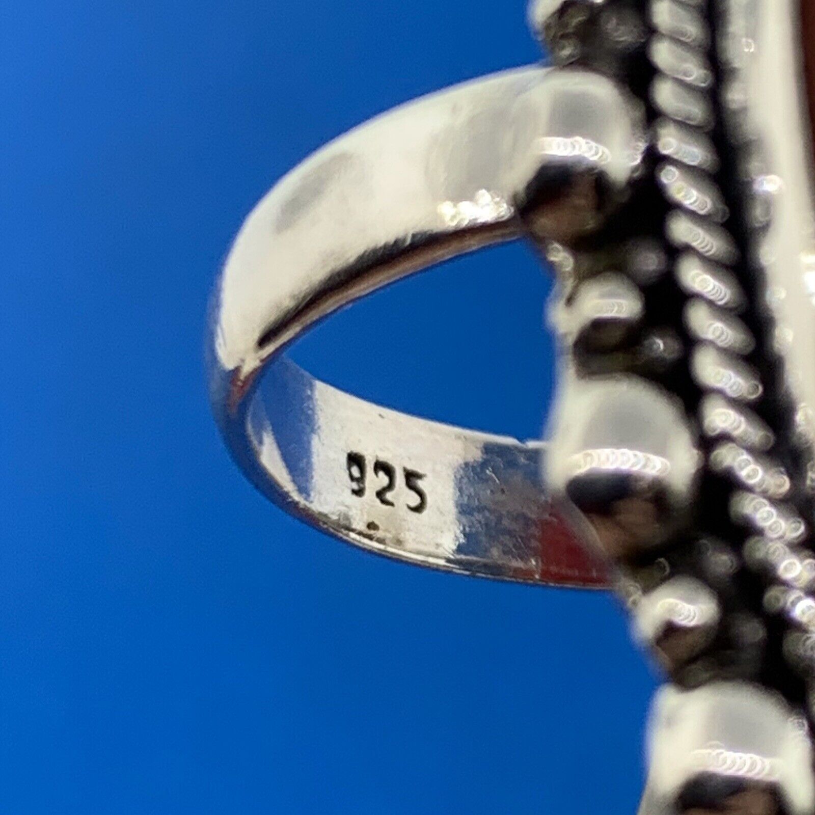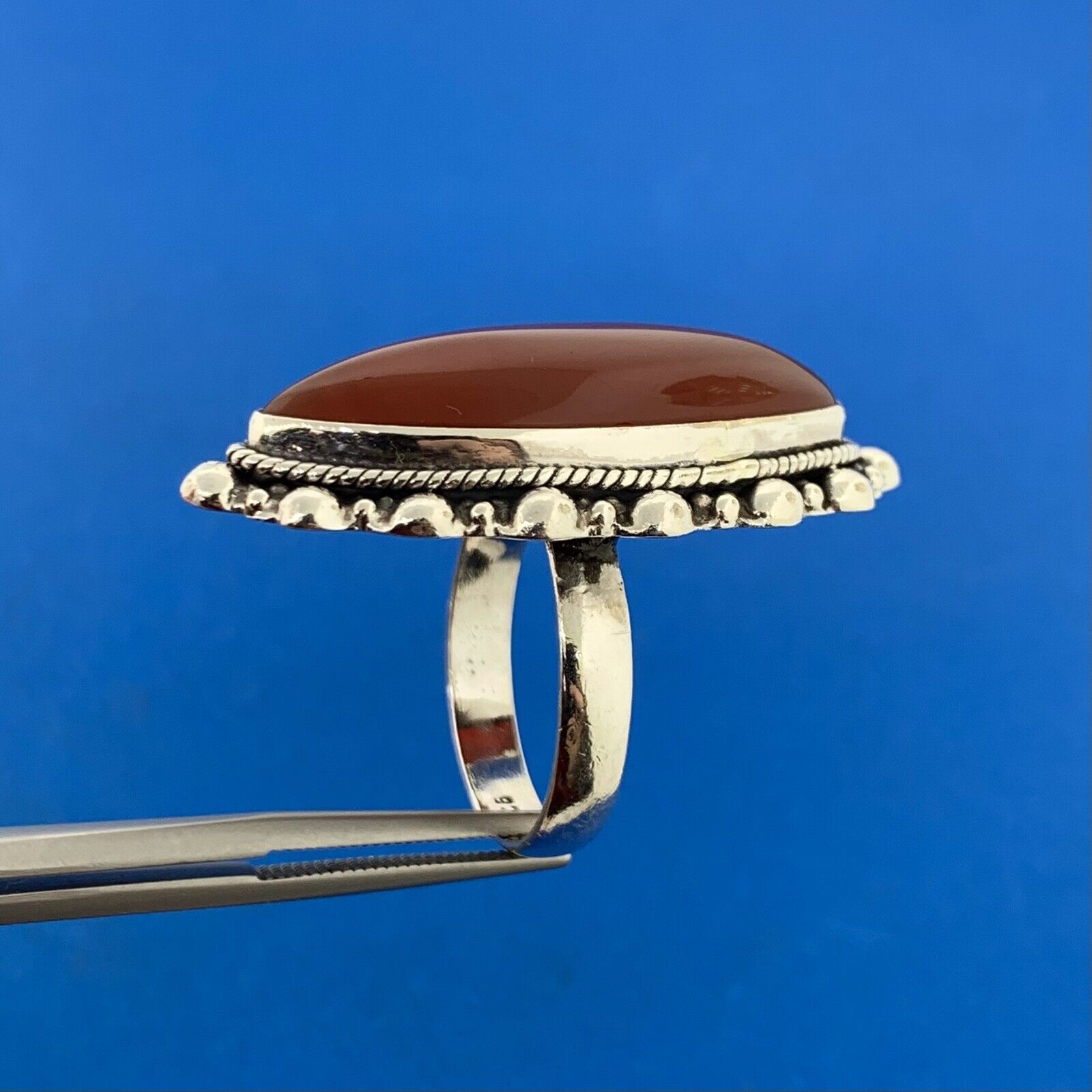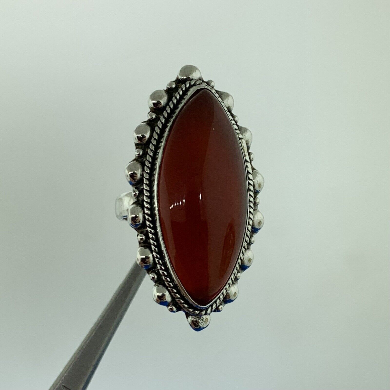 - 925 Sterling Silver Marquise Carnelian Cabochon Statement Finger Ring