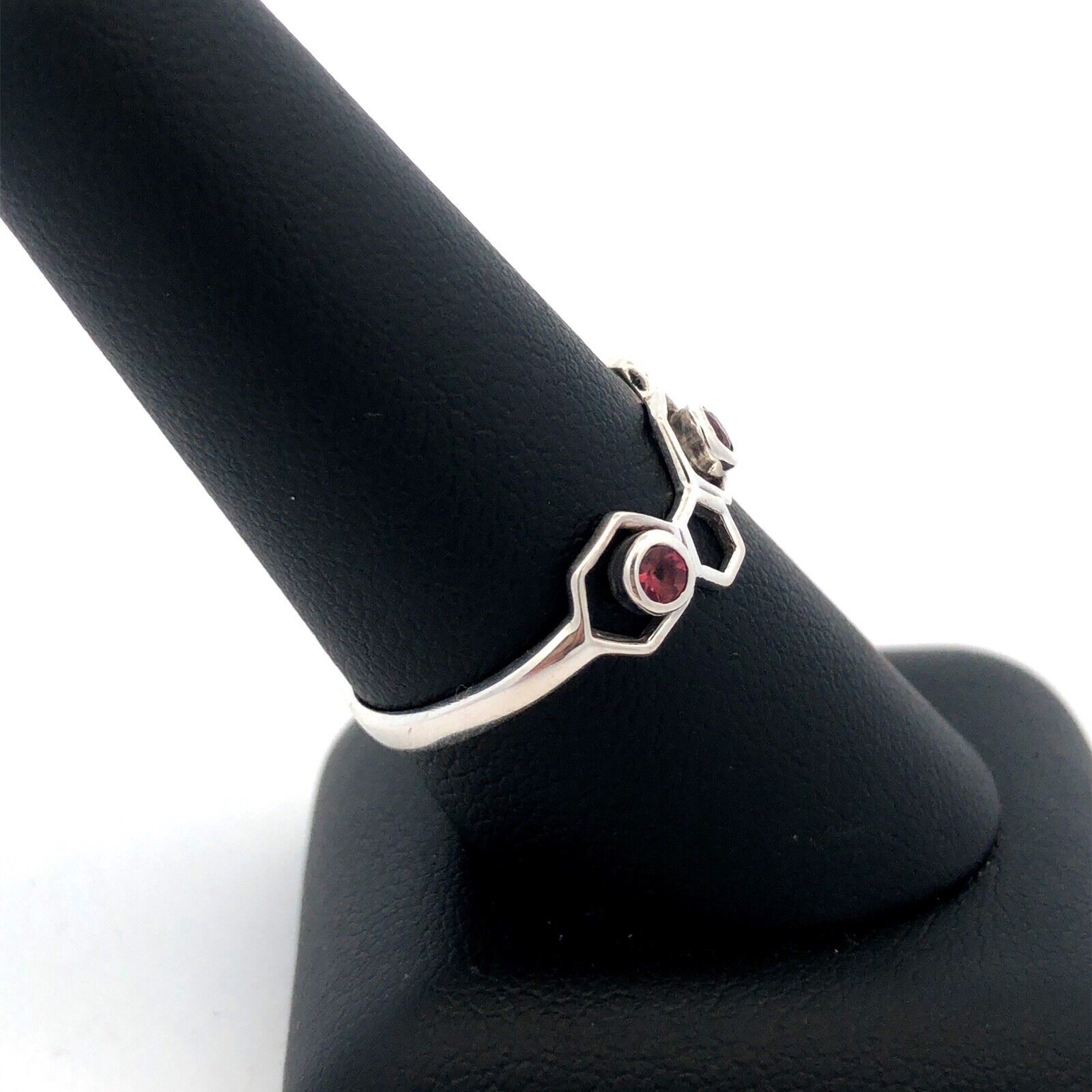 925 Sterling Silver Round Pink Tourmaline Honeycomb Hexagon Band Ring