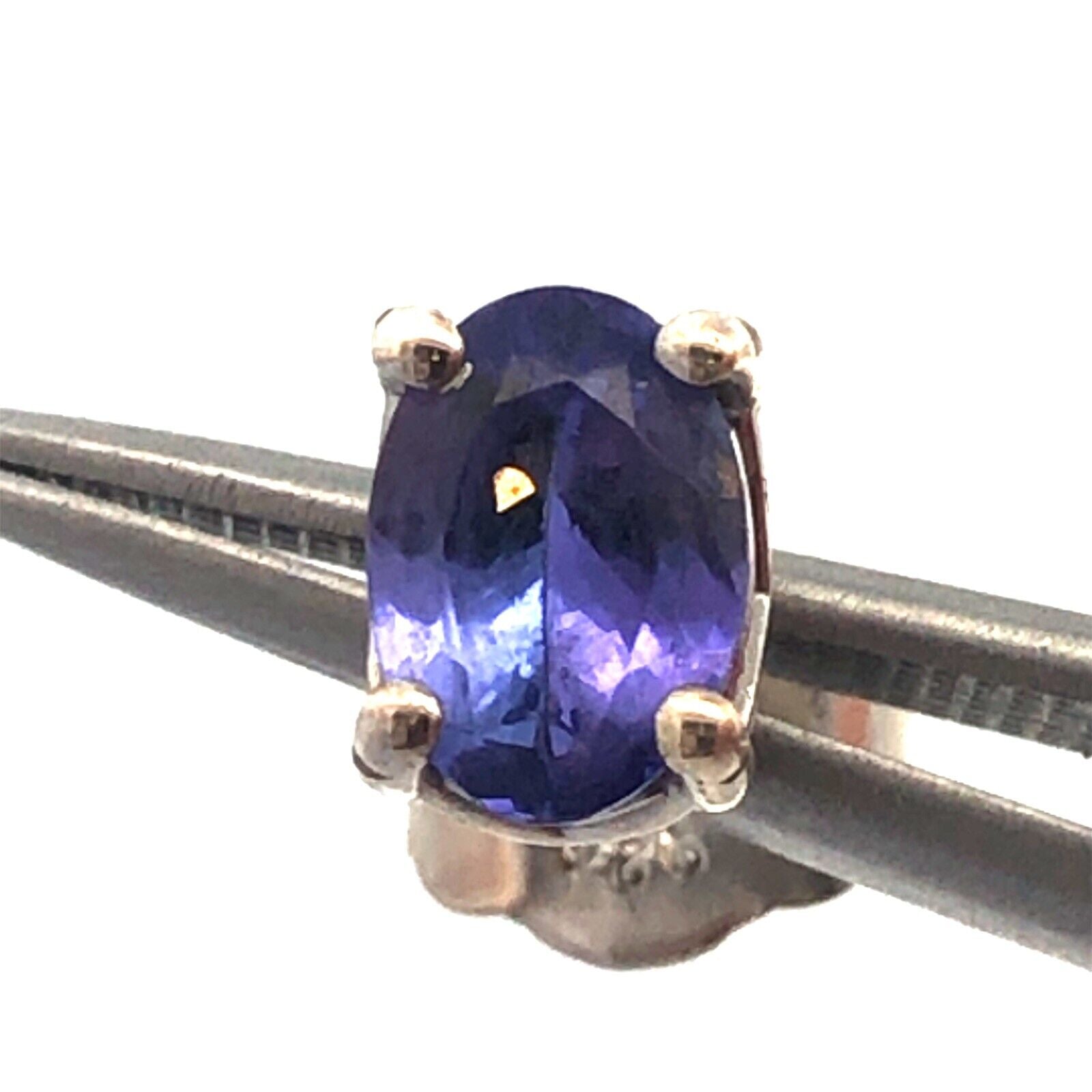 925 Sterling Silver Solitaire Oval Tanzanite Every Day Stud Earrings