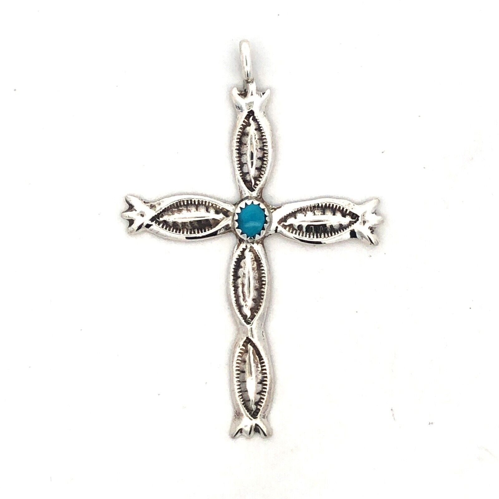 925 Sterling Silver Vintage Native American Old Pawn Turquoise Cross Pendant