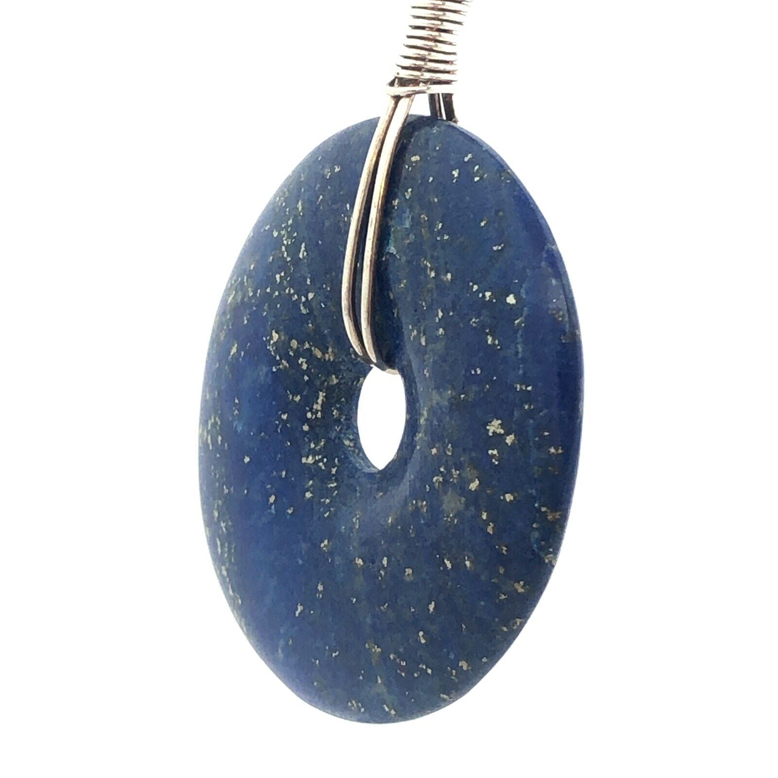 925 Sterling Silver Wire Lapis Lazuli Disc Round Statement Pendant