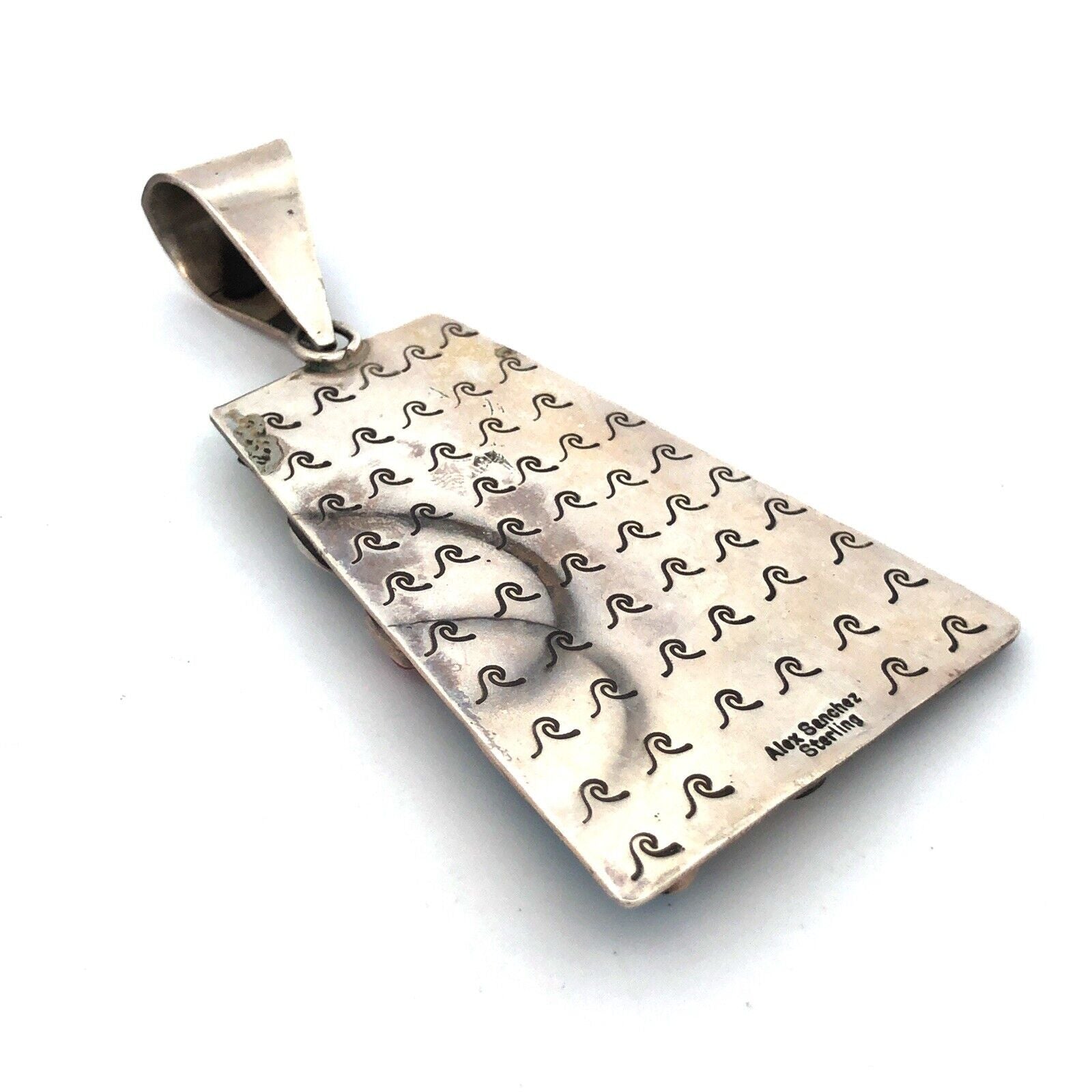 - Alex Sanchez Navajo Sterling Silver Turquoise Coral Petroglyph Enhancer Pendant