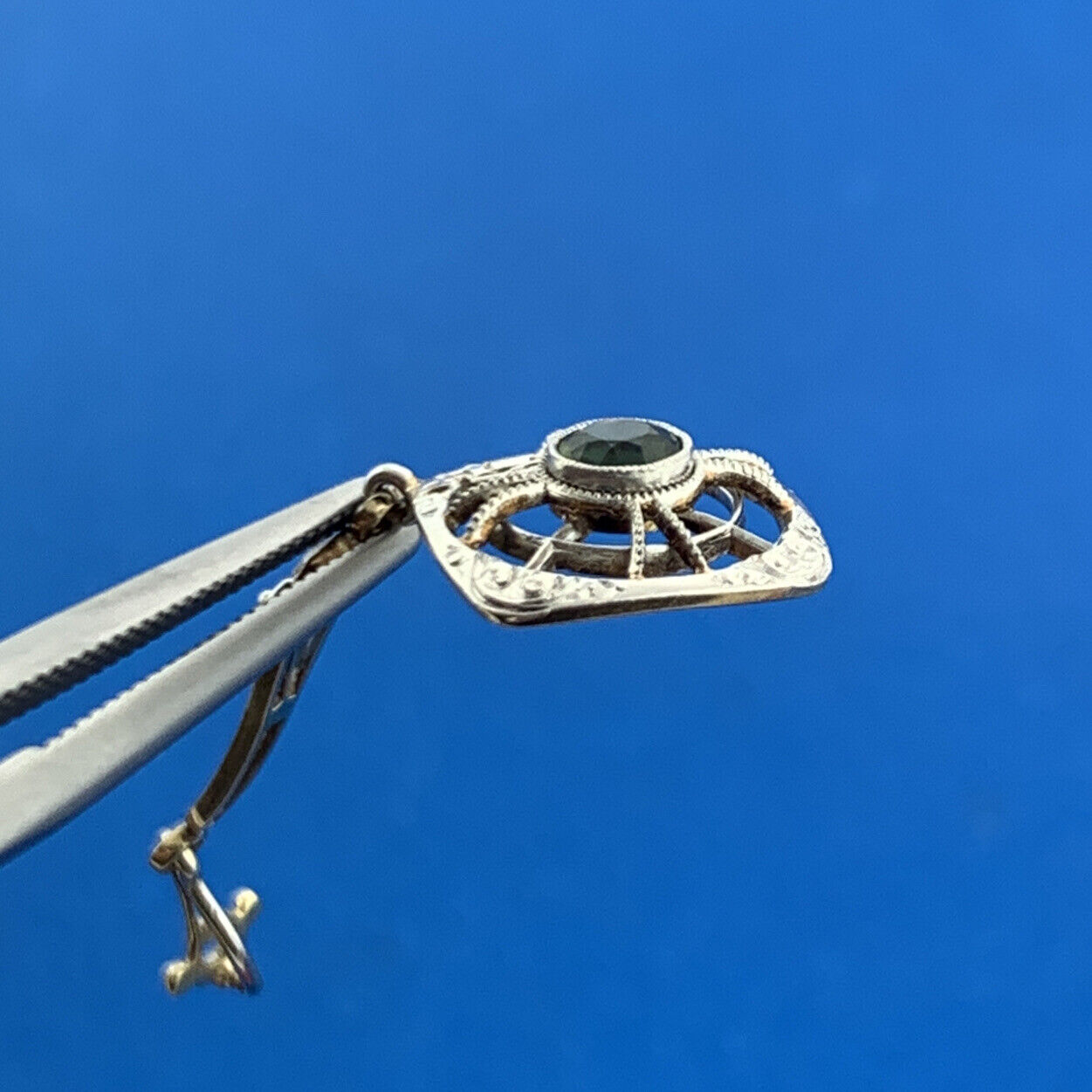 Art Deco 14K White Gold Peridot August Anniversary Filigree Scroll Drop Pendant