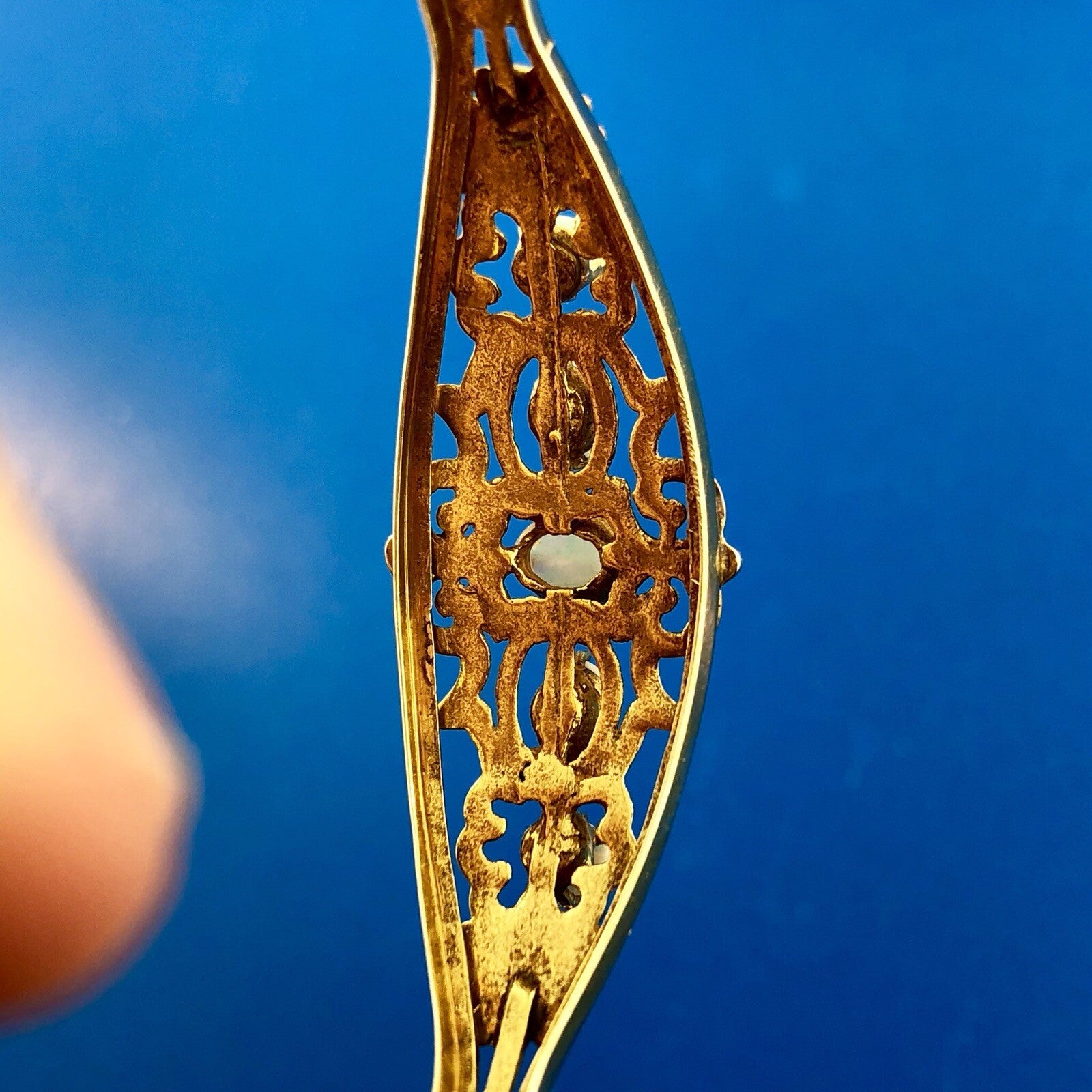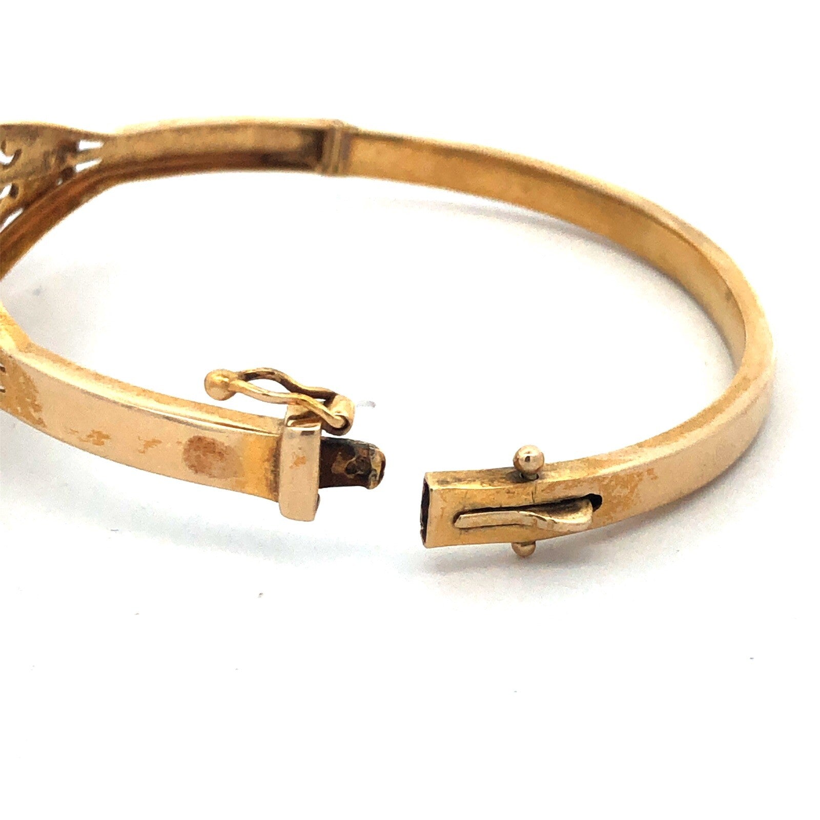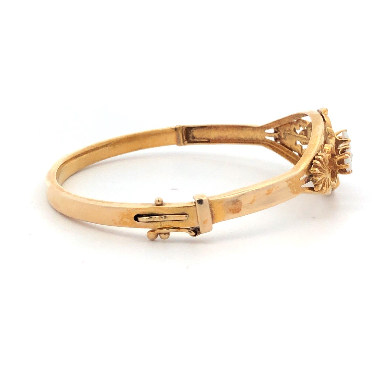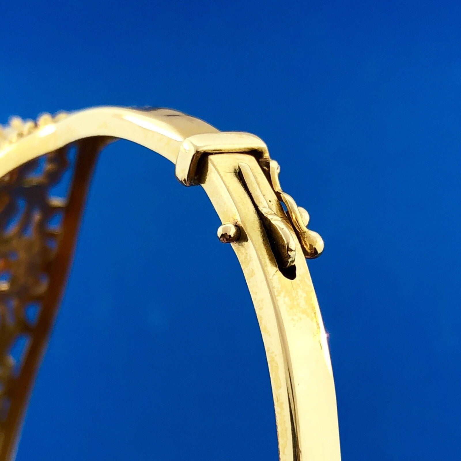 Art Deco 14K Yellow Gold Ornate Opal Scroll Decorative Scroll Bangle Bracelet