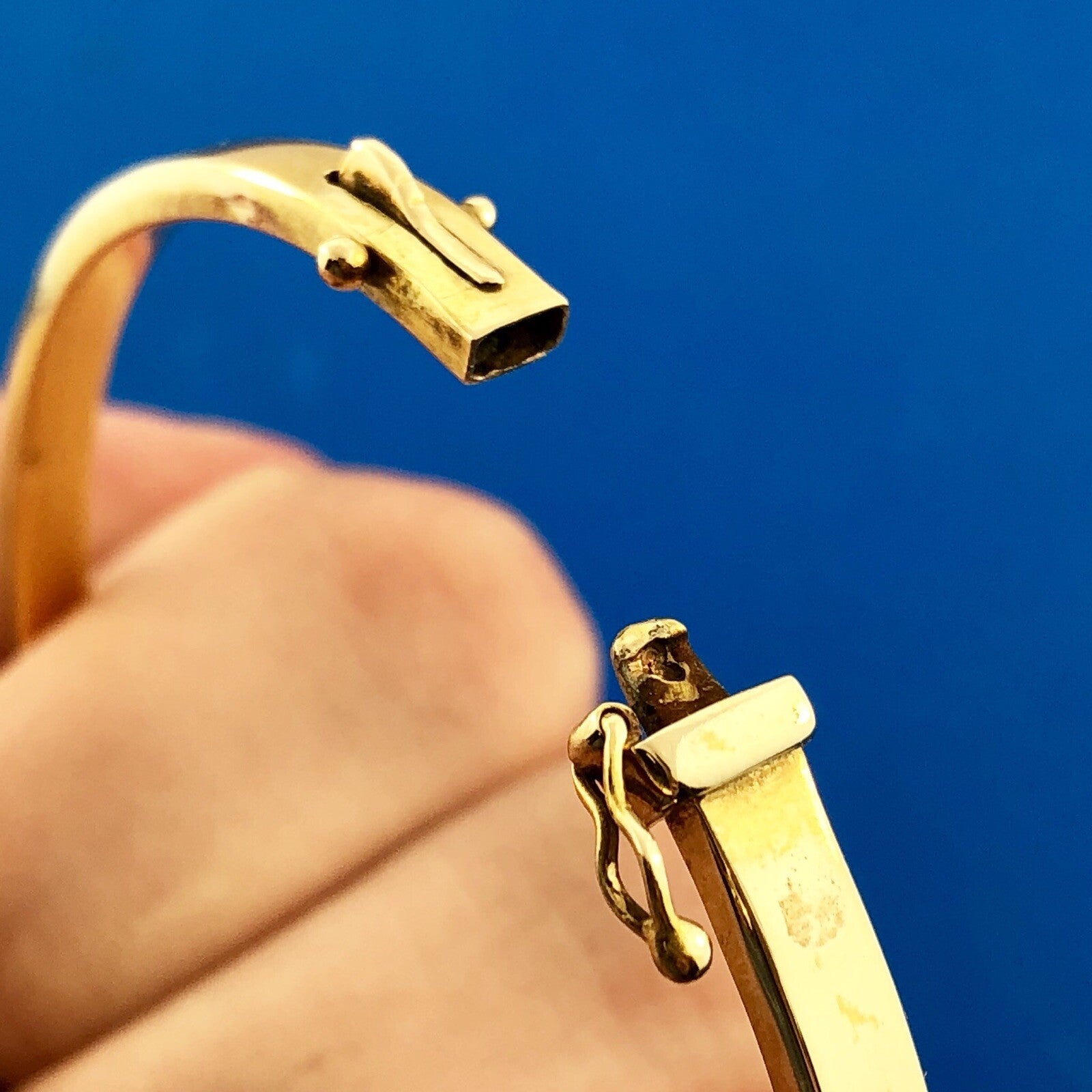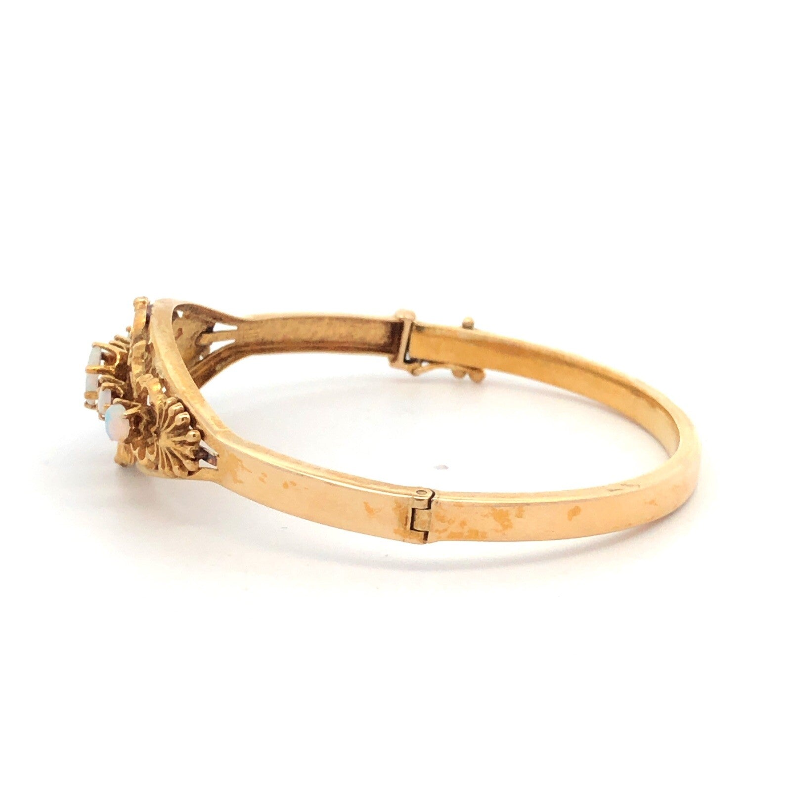 - Art Deco 14K Yellow Gold Ornate Opal Scroll Decorative Scroll Bangle Bracelet