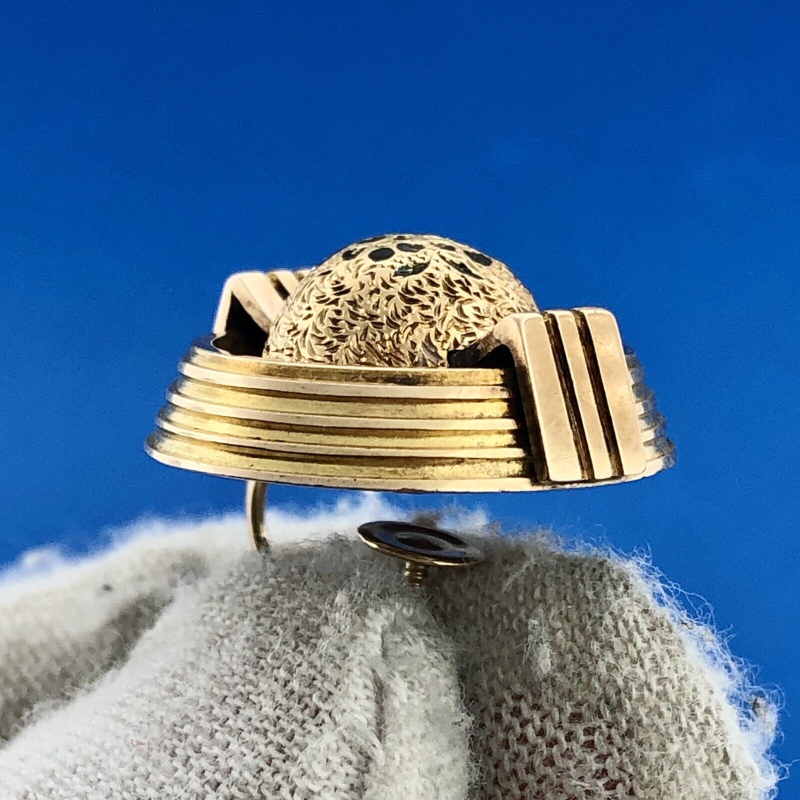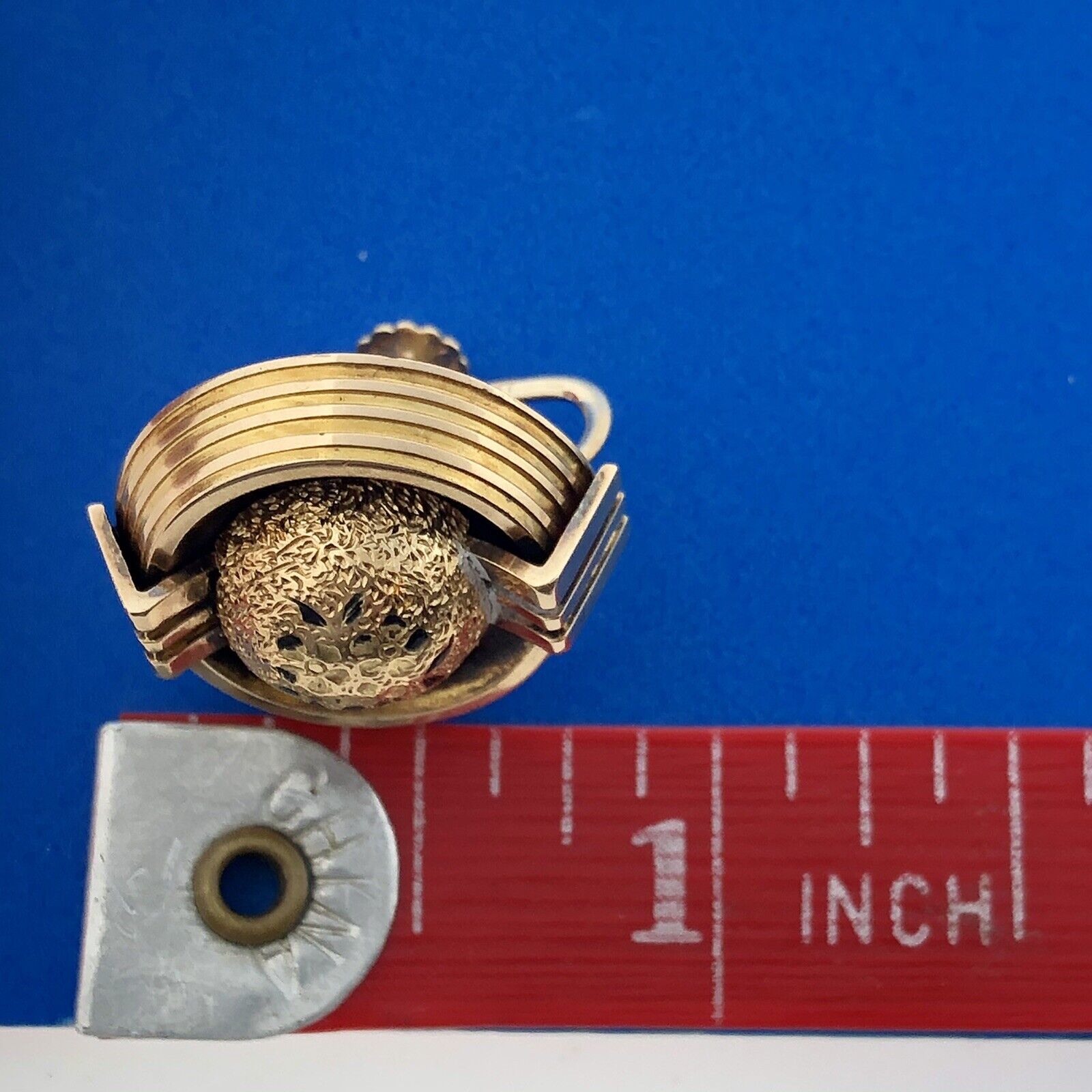 Art Deco Art Nouveau 14K Yellow Gold Black Enamel Modernist Linear Ball Earrings