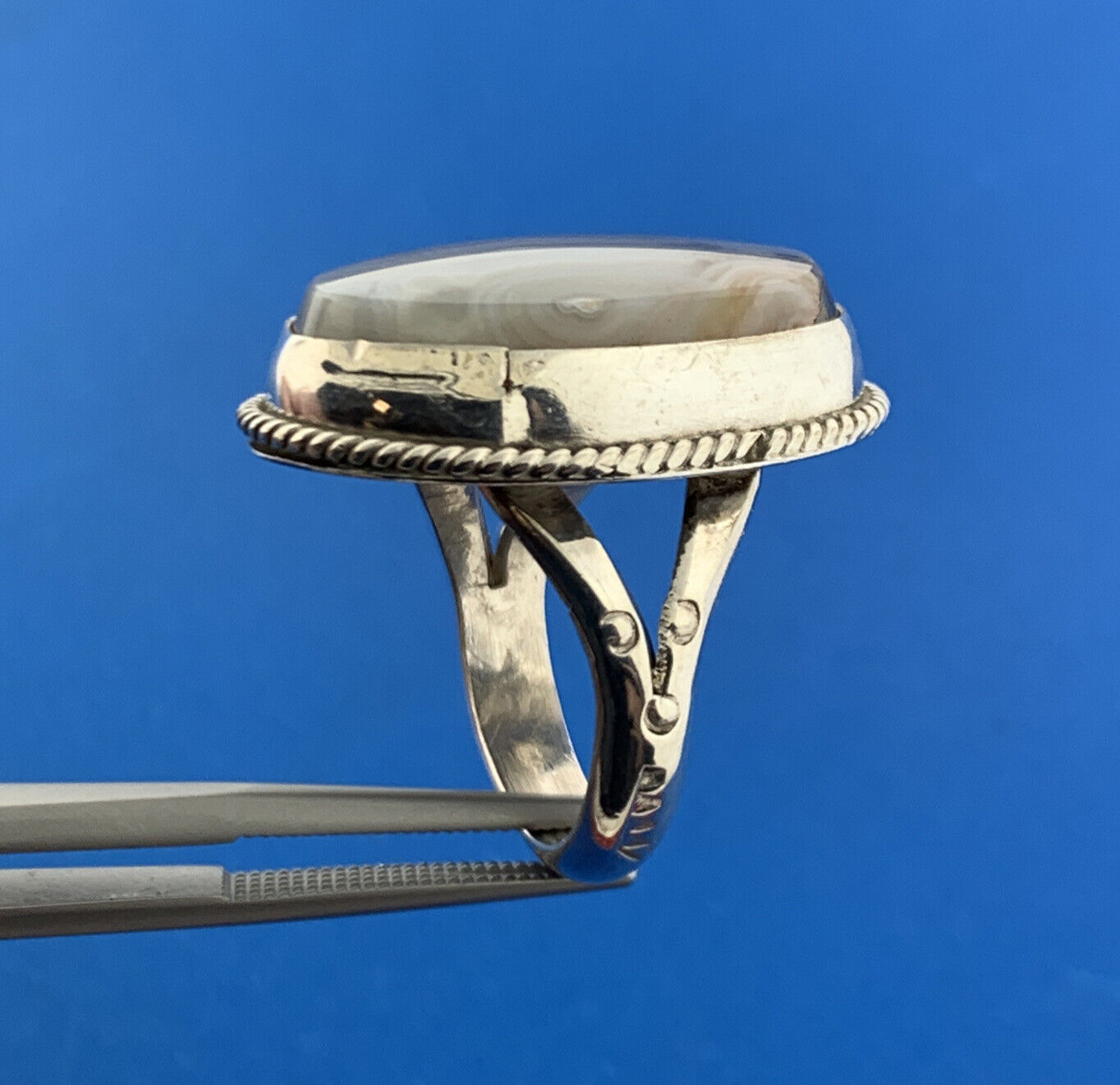 - Artisan Sterling Silver 925 Oval Laguna Lace Agate Statement Fashion Ring