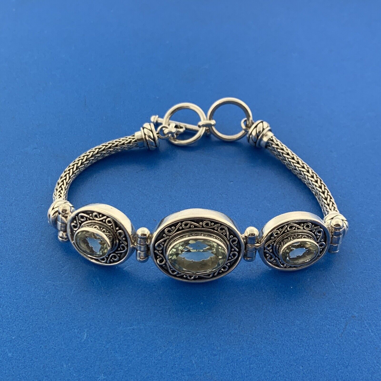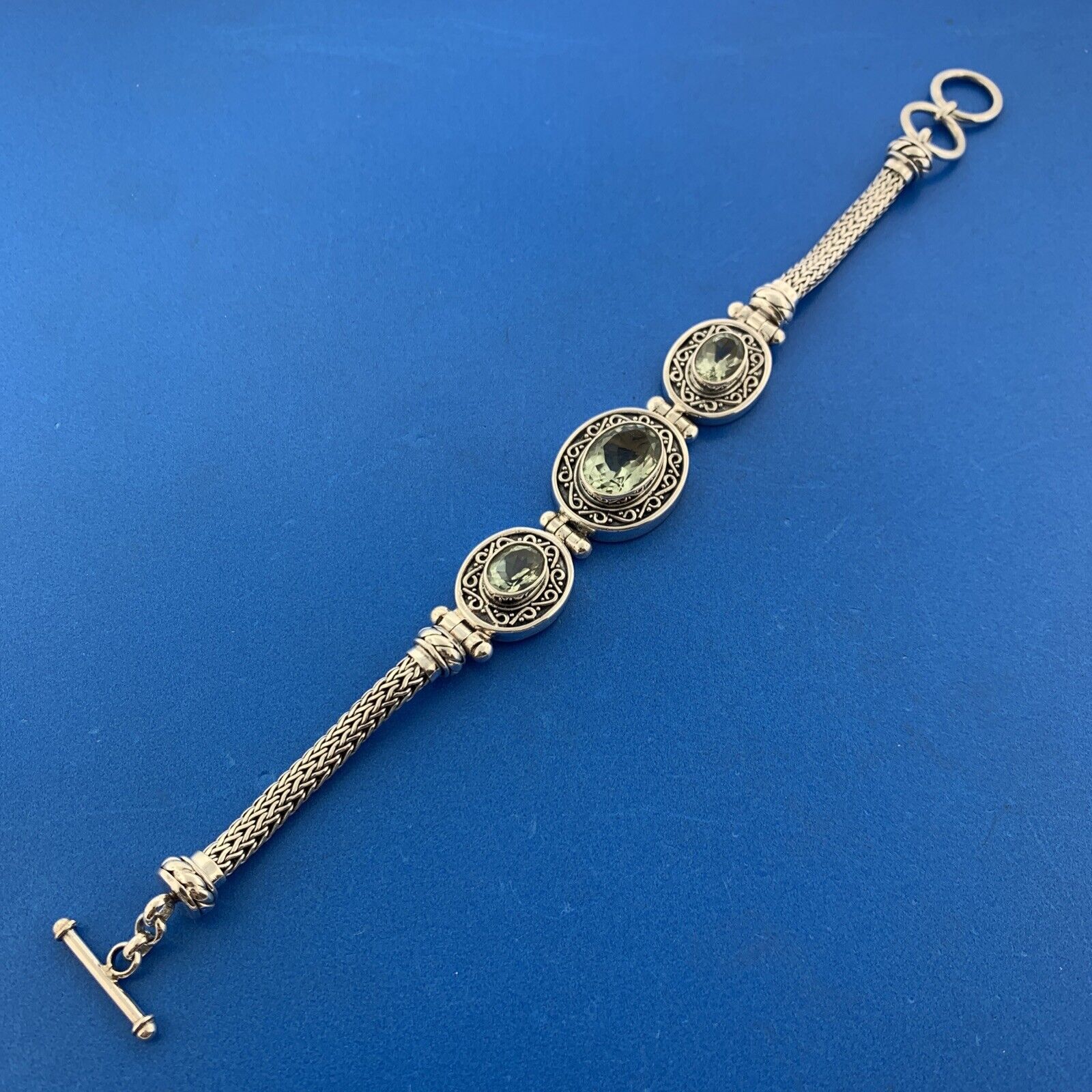 BA Suarti Sterling Silver Oval Prasiolite Balinese Statement Toggle Bracelet
