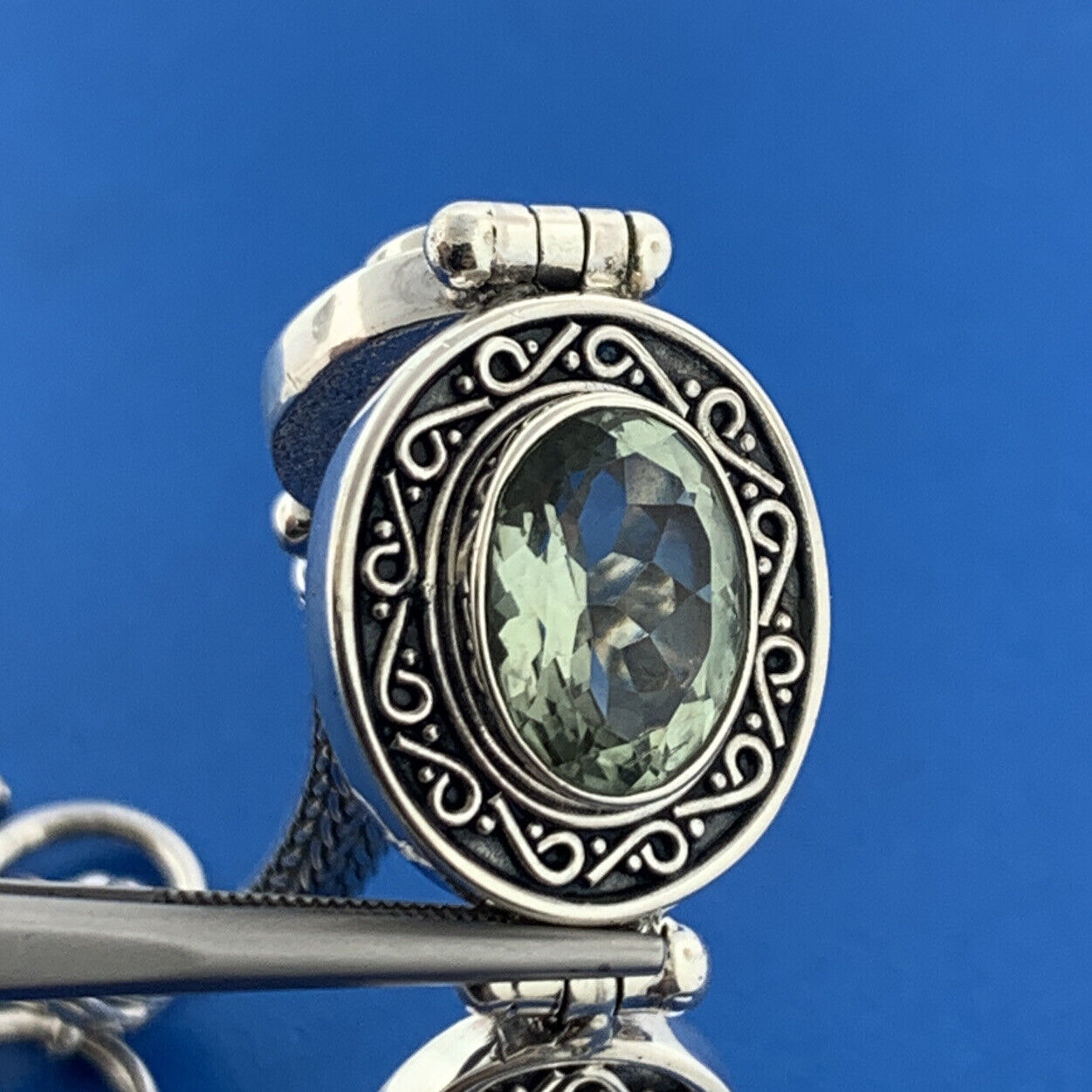 - Prasiolite total carat weight: approximately 7.50 tcw