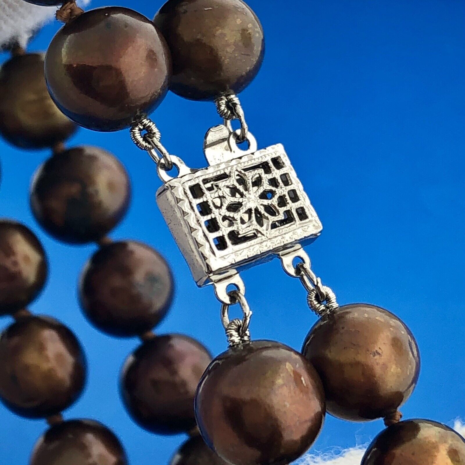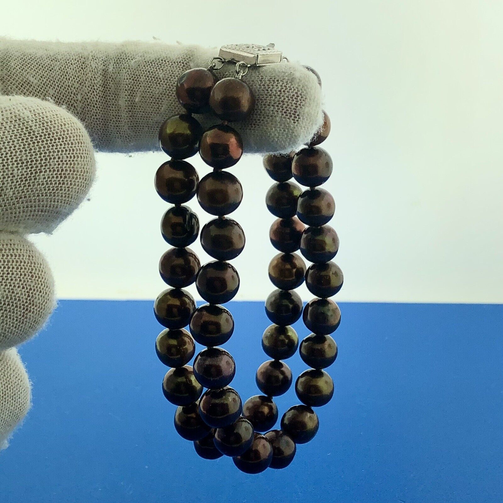 - Beautiful 925 Sterling Silver Bronze Chocolate Pearl Double Strand Bracelet
