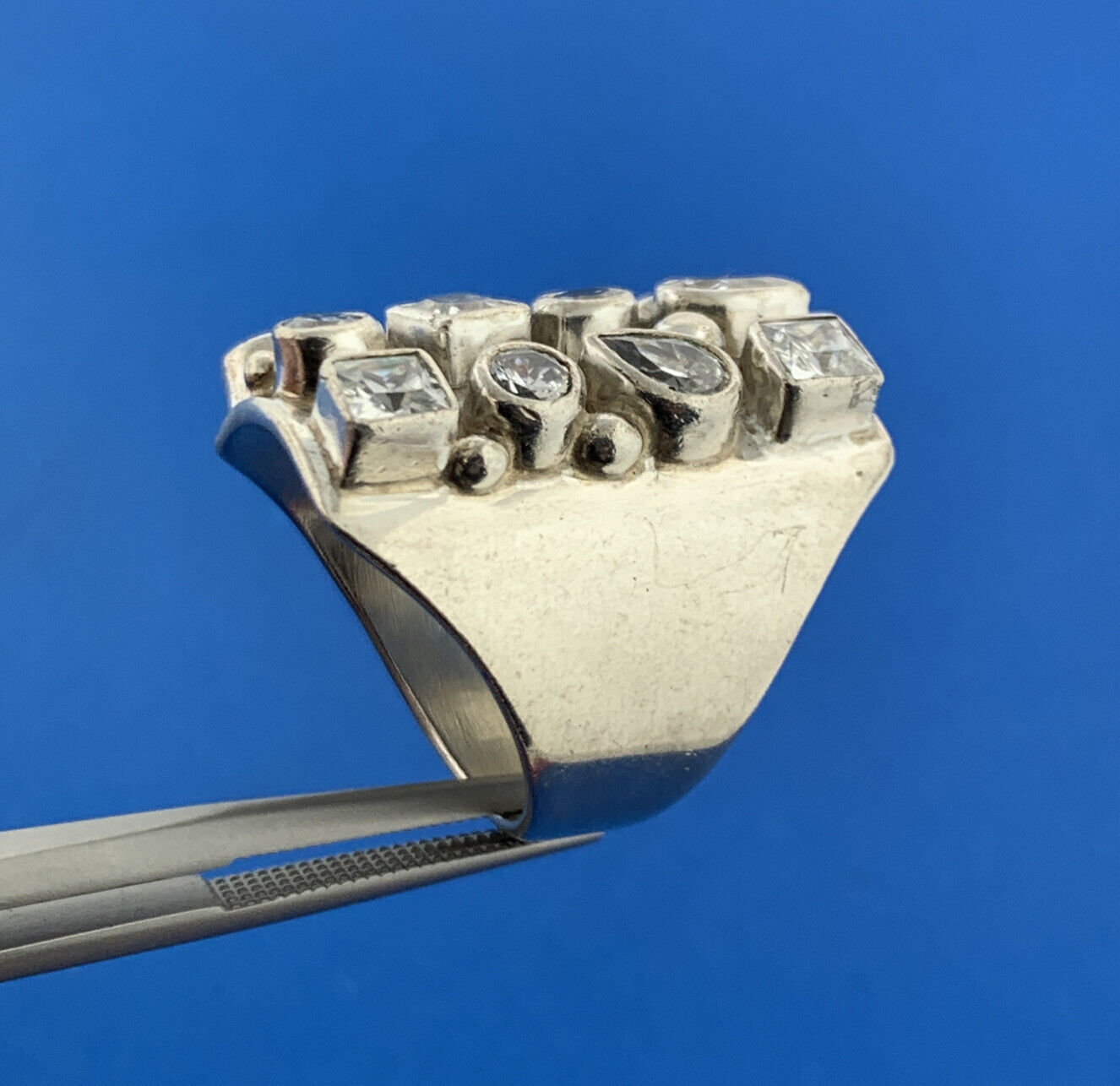 - Bilagaanas Native American Artisan Sterling Silver Cubic Zirconia Statement Ring