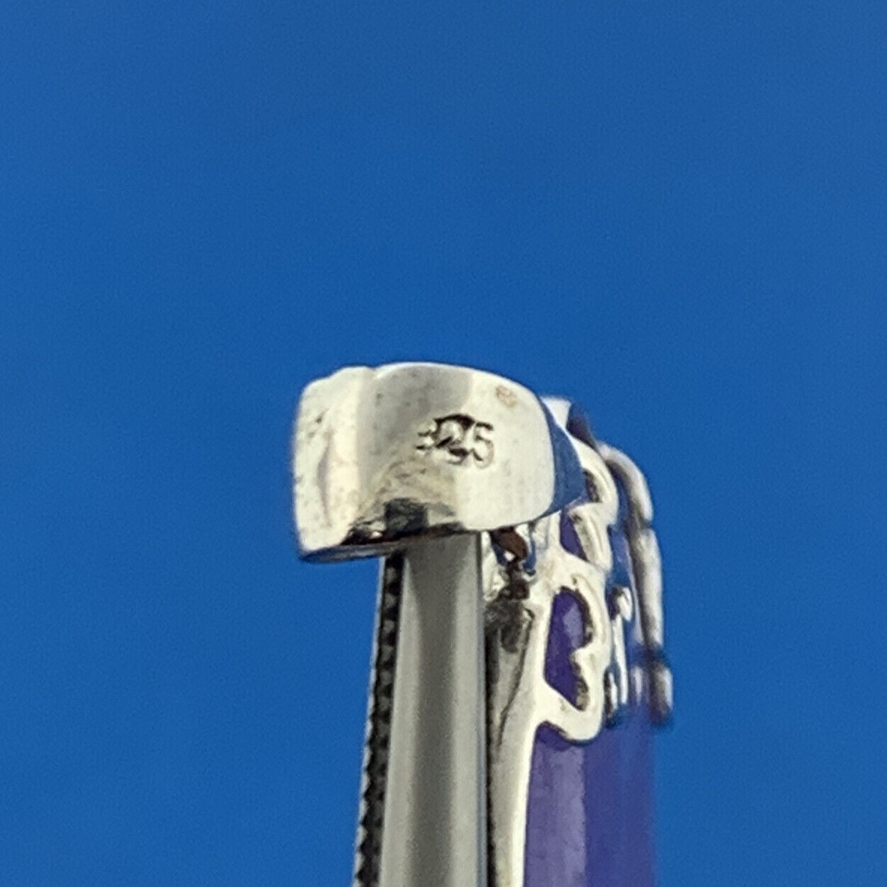 - Chinese Export 925 Sterling Silver Lavender Long Life Statement Disc Pendant