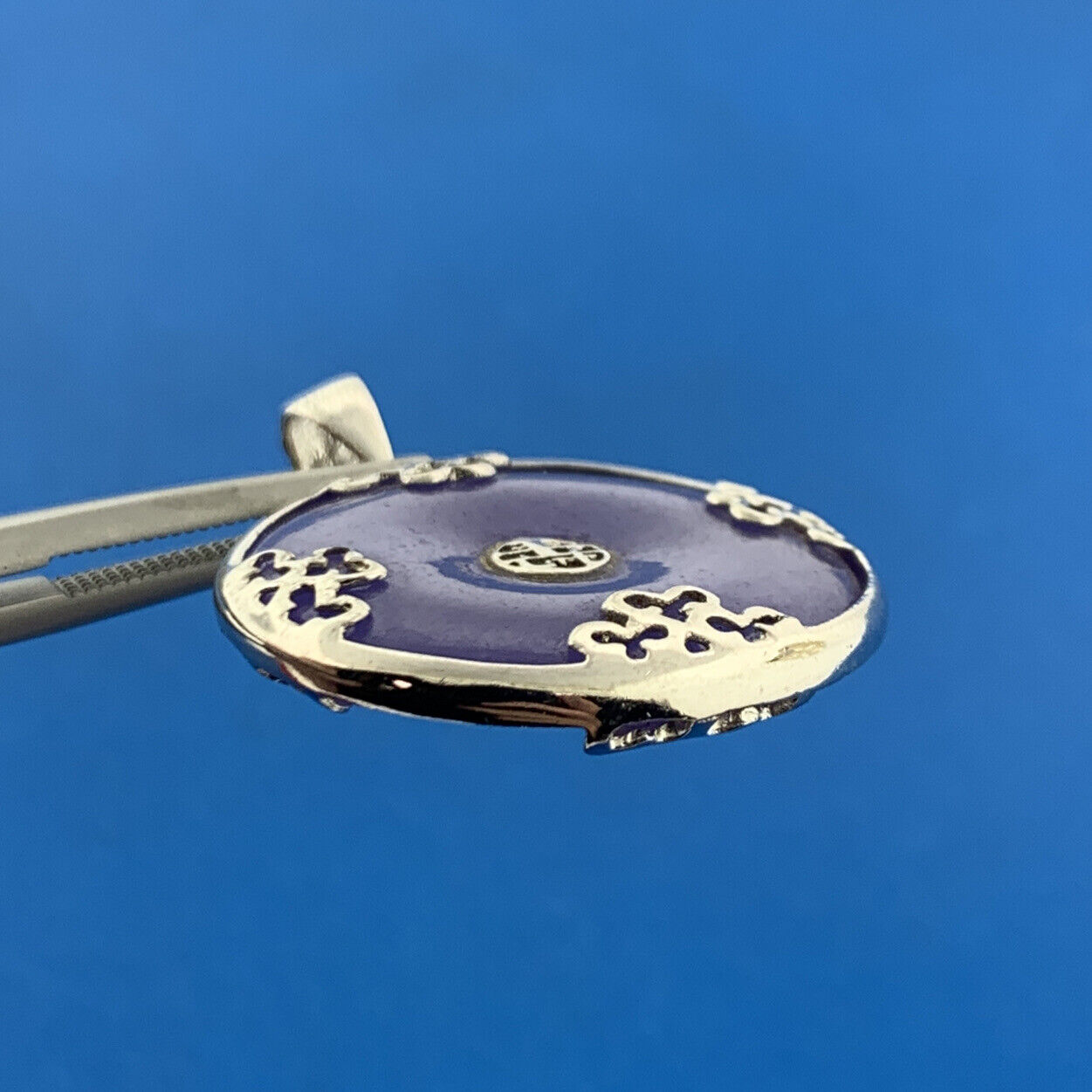 Chinese Export 925 Sterling Silver Lavender Long Life Statement Disc Pendant