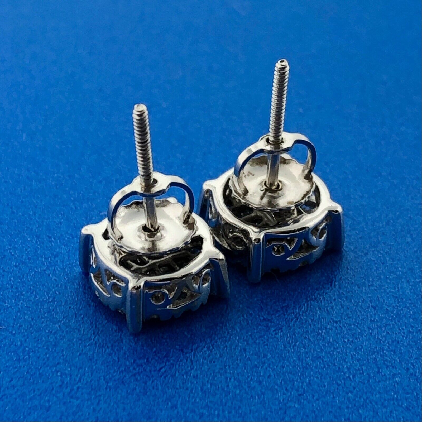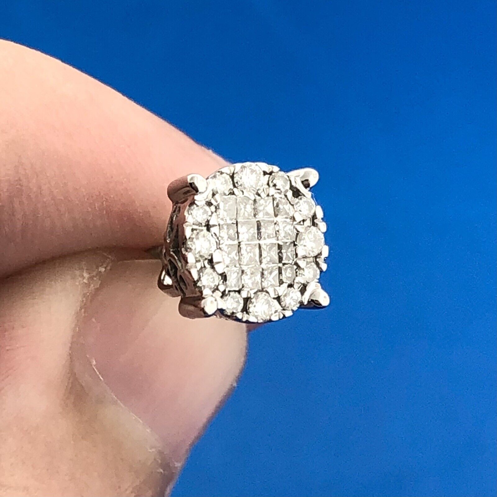 - Classic 14K White Gold Princess Round Diamond Circle Cluster Stud Earrings
