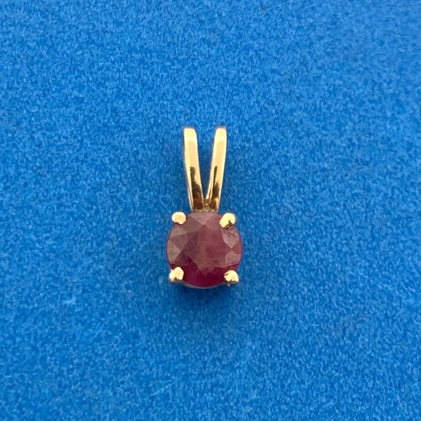 - Classic 14K Yellow Gold Round Ruby Solitaire July Anniversary Petite Pendant