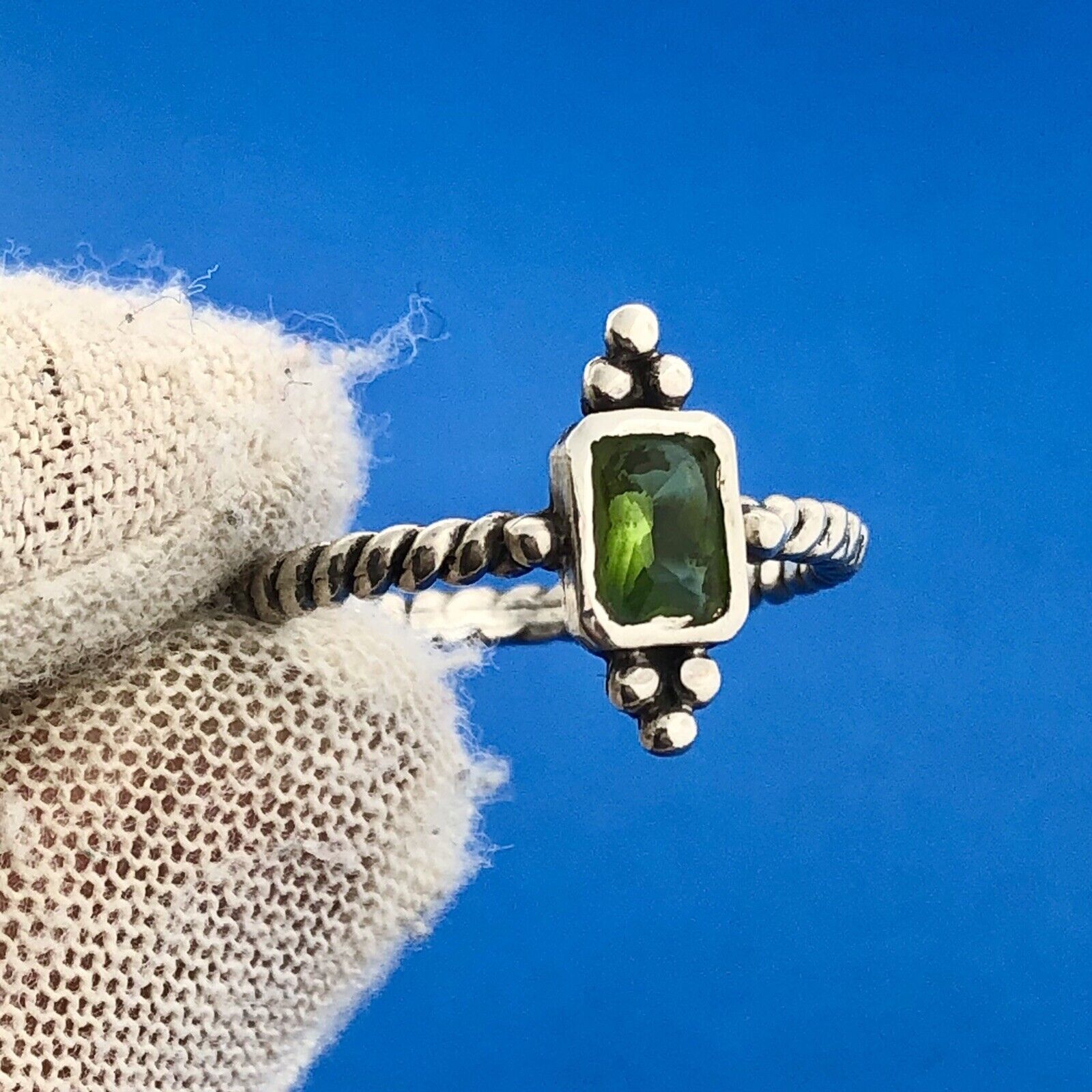 - Classic 925 Sterling Silver Peridot Rectangle Bead Work Cable Band Ring