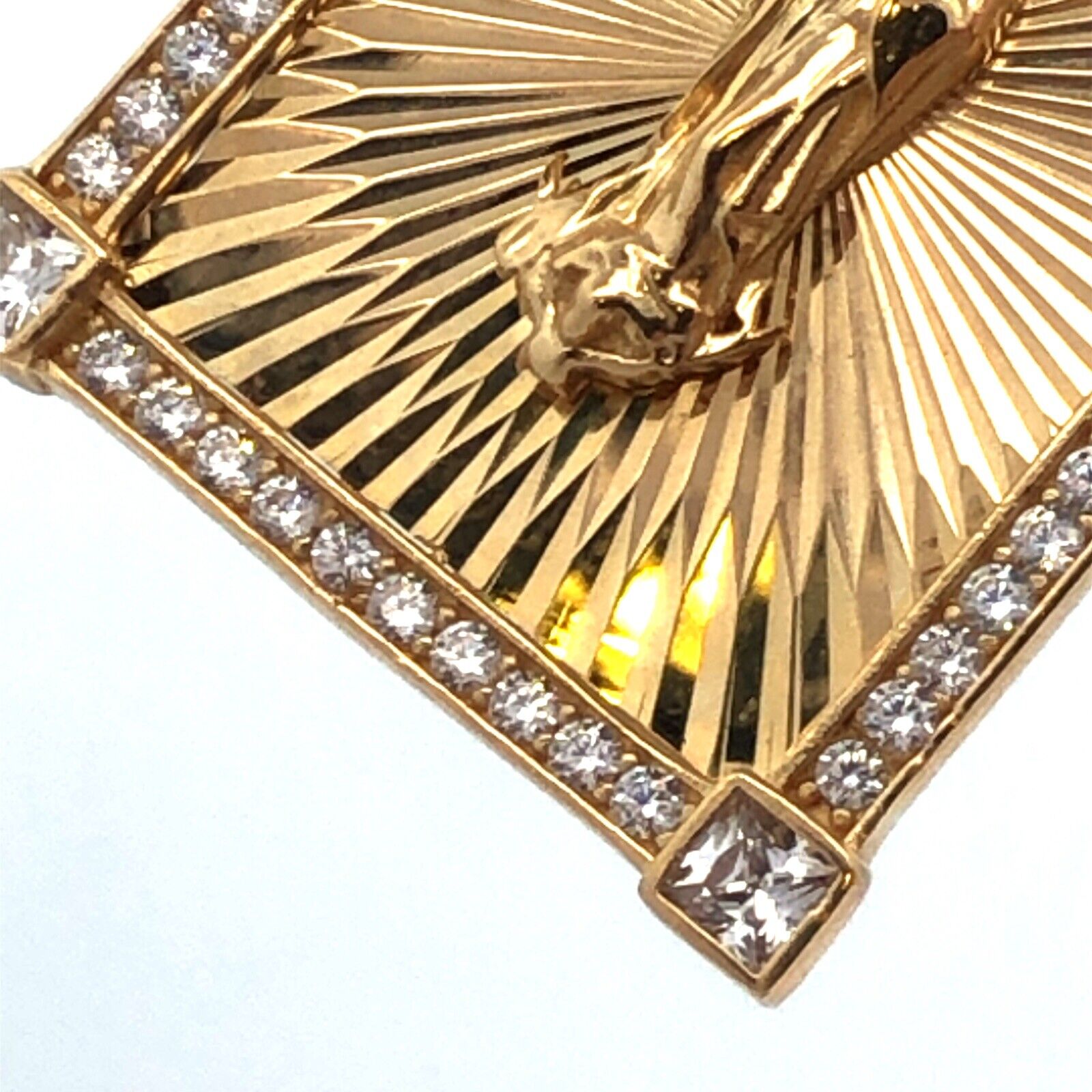 - Custom 10K Yellow Gold Cut Cubic Zirconia Madonna Religious Statement Pendant