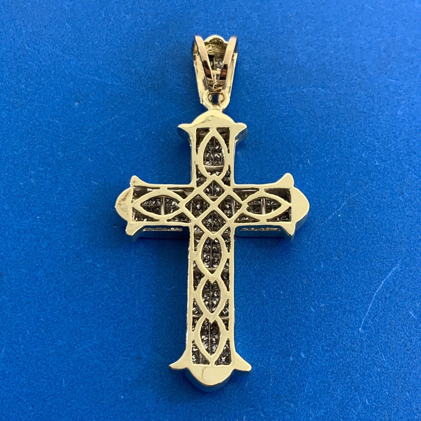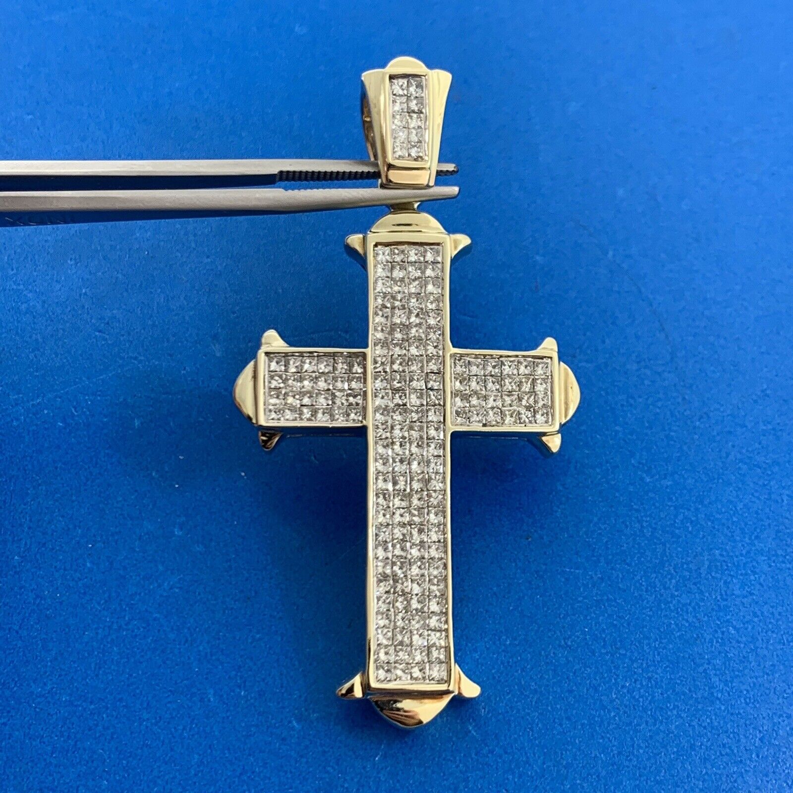 - Custom 14K Yellow Gold Princess Diamond Statement Religious Cross Pendant