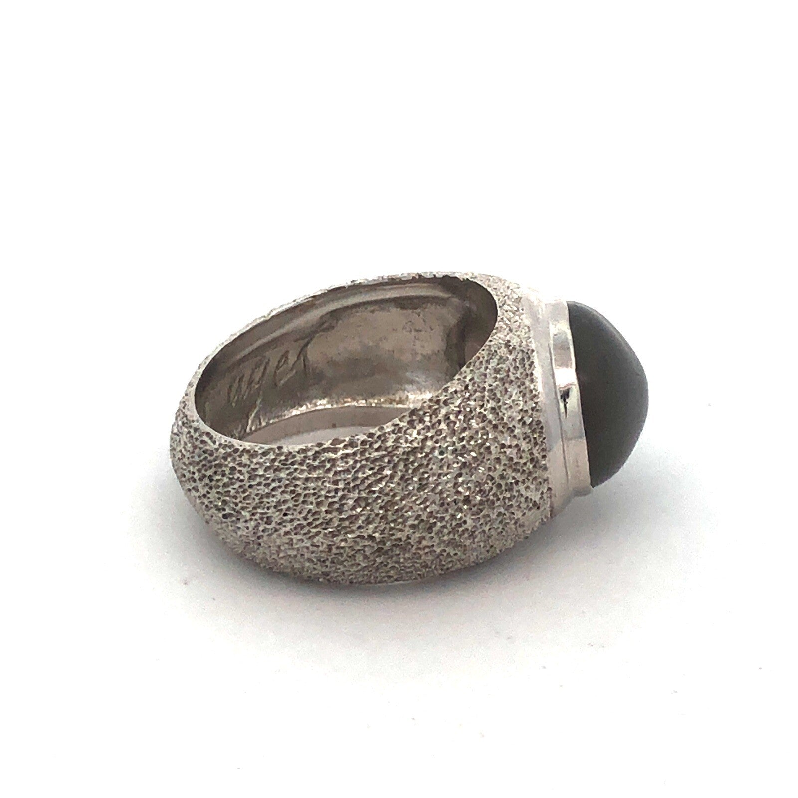 - Custom Mignon Faget 925 Sterling Silver Oval Grey Cat's Eye Sea Urchin Dome Ring
