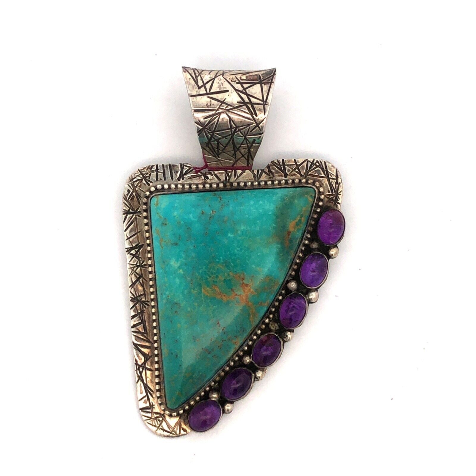 - David Troutman Navajo 925 Sterling Silver Turquoise Amethyst Statement Pendant