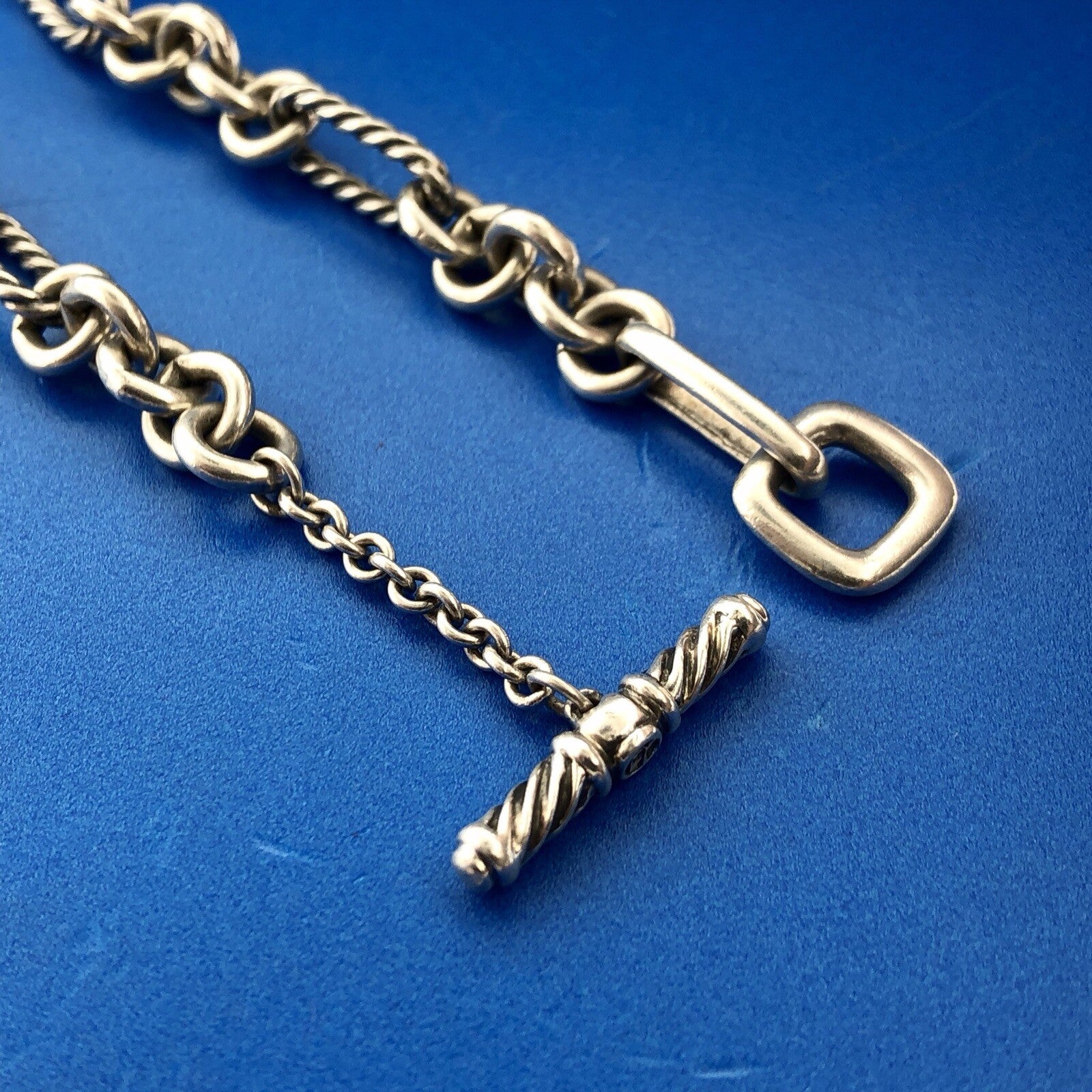 David Yurman 18K Gold Sterling Silver Black Onyx Station Statement Necklace