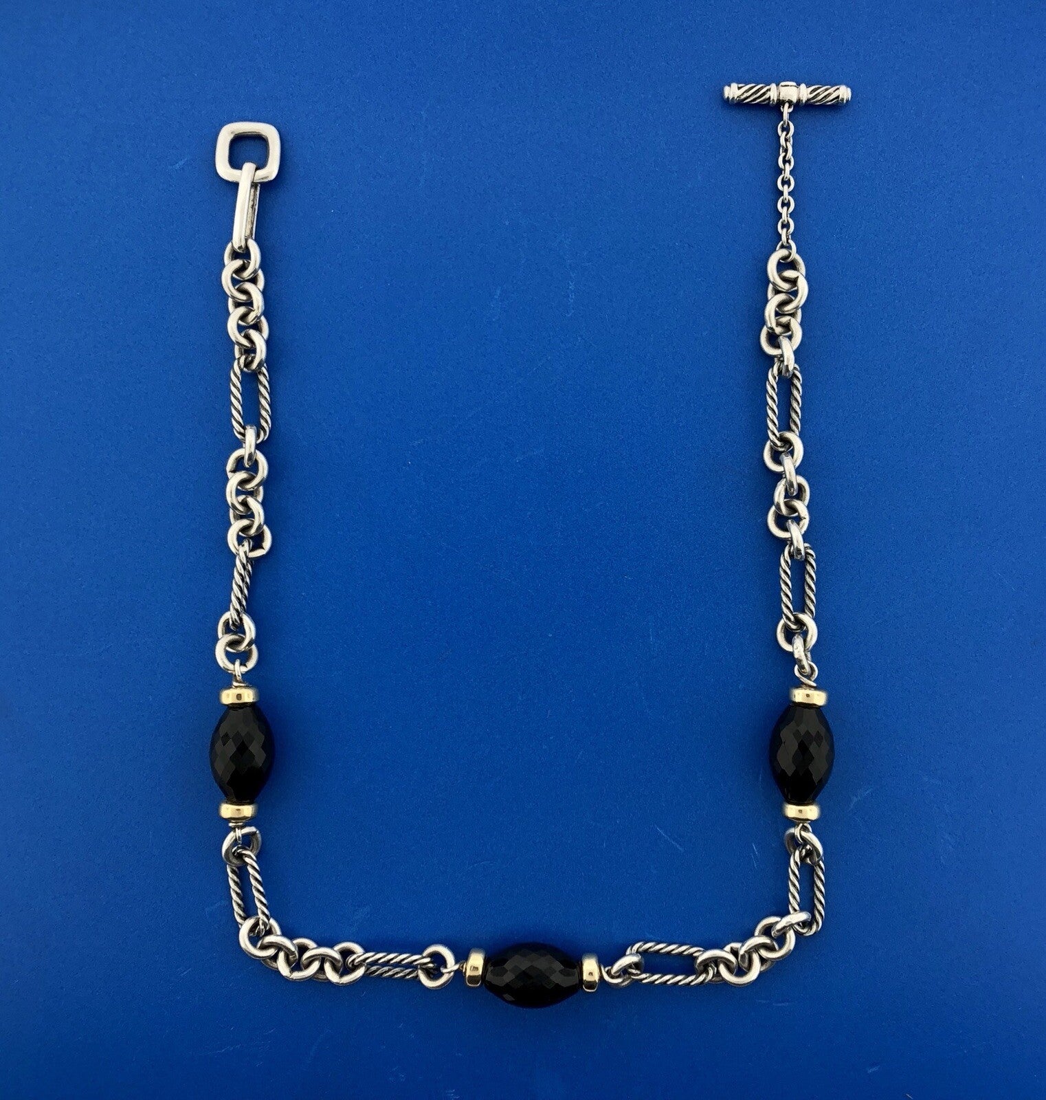 - David Yurman 18K Gold Sterling Silver Black Onyx Station Statement Necklace