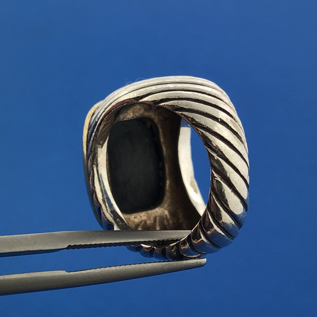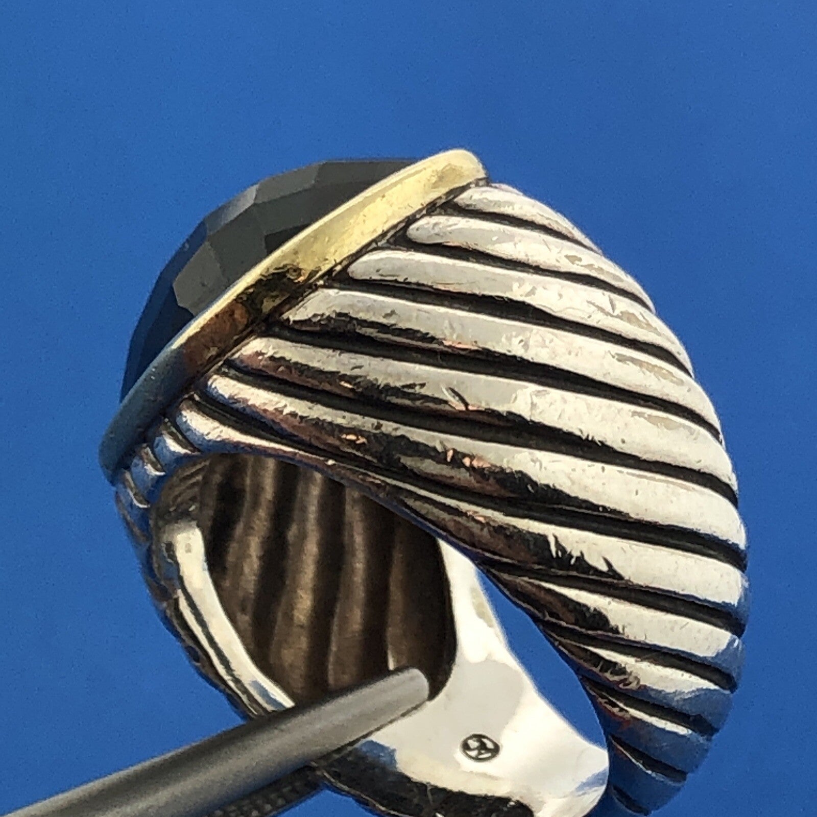 David Yurman 18K Yellow Gold Sterling Silver Faceted Black Onyx Noblesse Ring