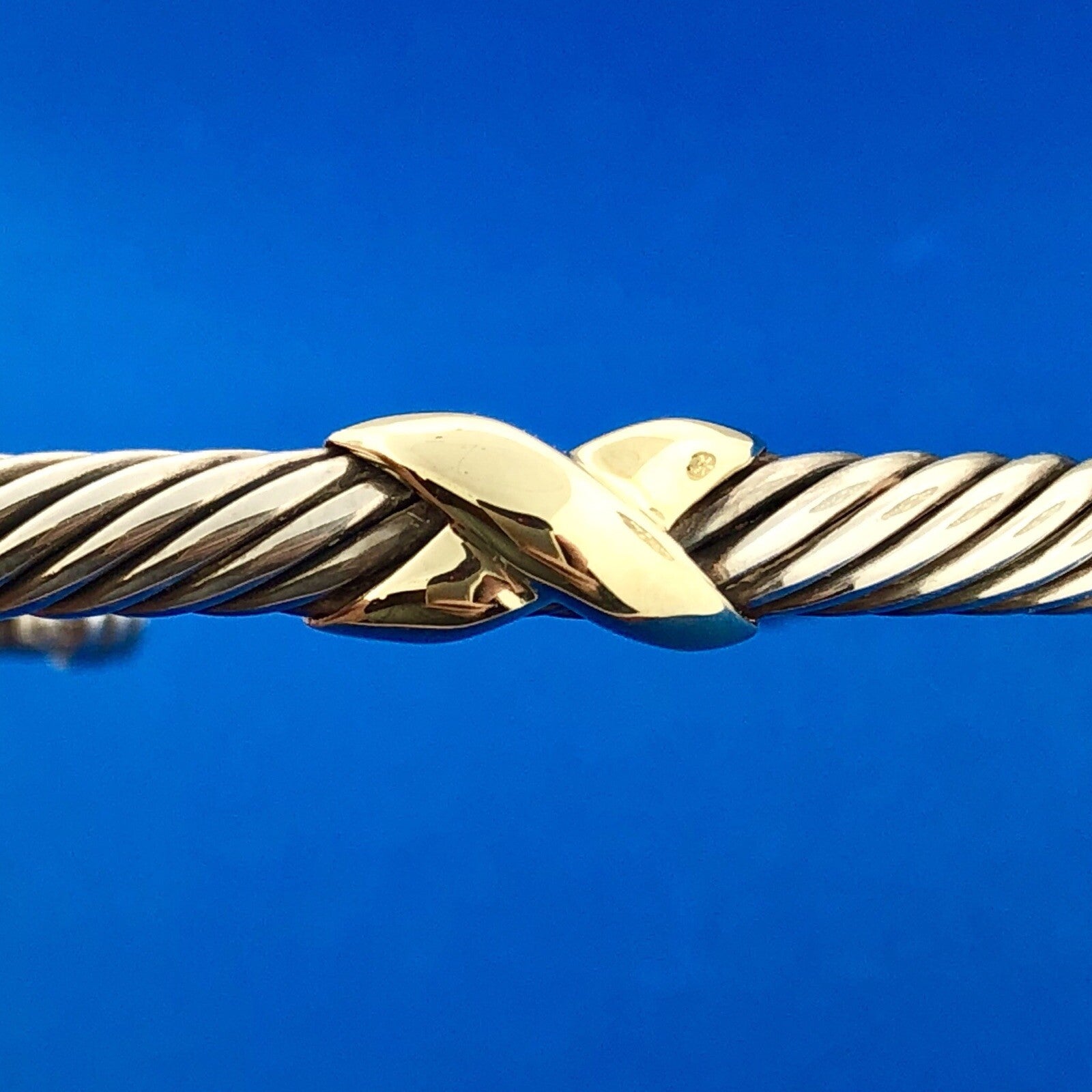 - David Yurman 925 Sterling Silver 14K Gold Station Single X Cable Cuff Bracelet