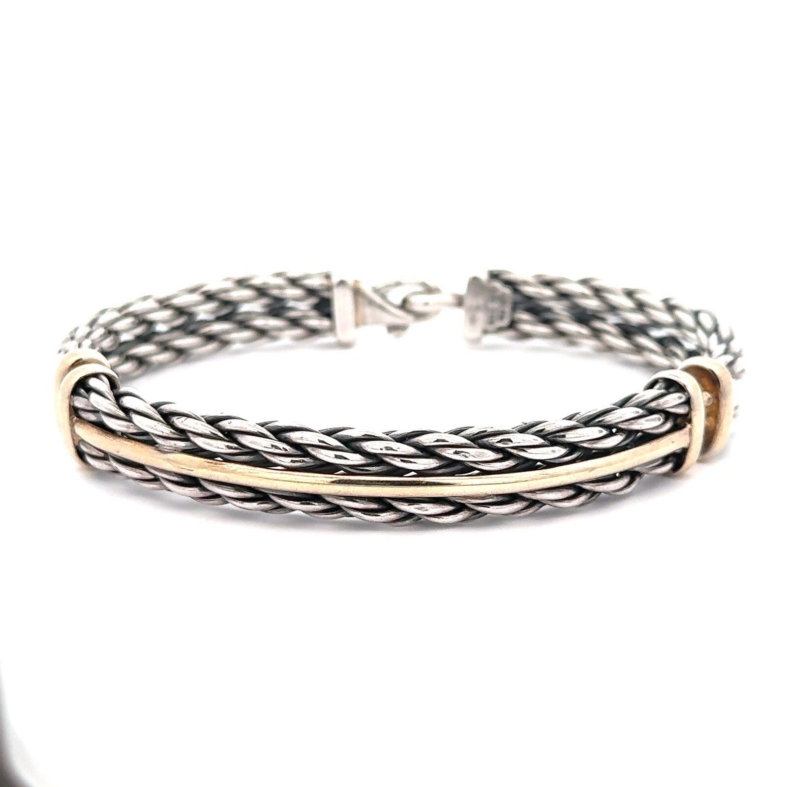 David Yurman 925 Sterling Silver 18K Yellow Gold Cable Bar Chain Cuff Bracelet