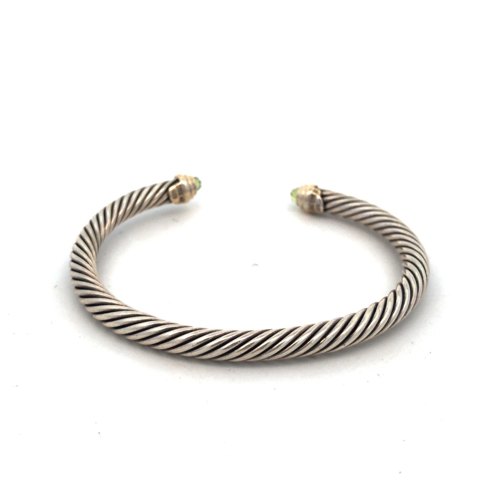 David Yurman Sterling Silver 14K Gold Peridot 5mm Classic Cable Cuff Bracelet