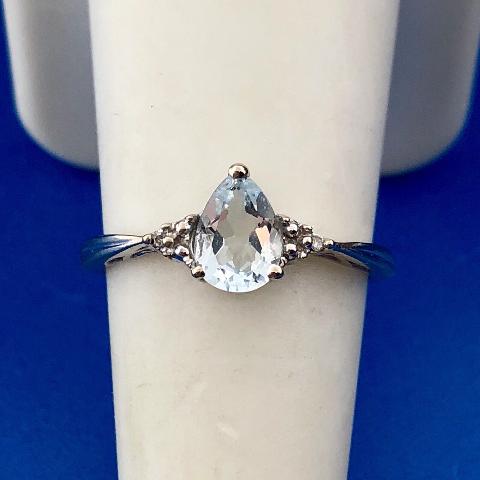 - Designer 10K White Gold Blue Tourmaline Diamond Anniversary Cocktail Ring
