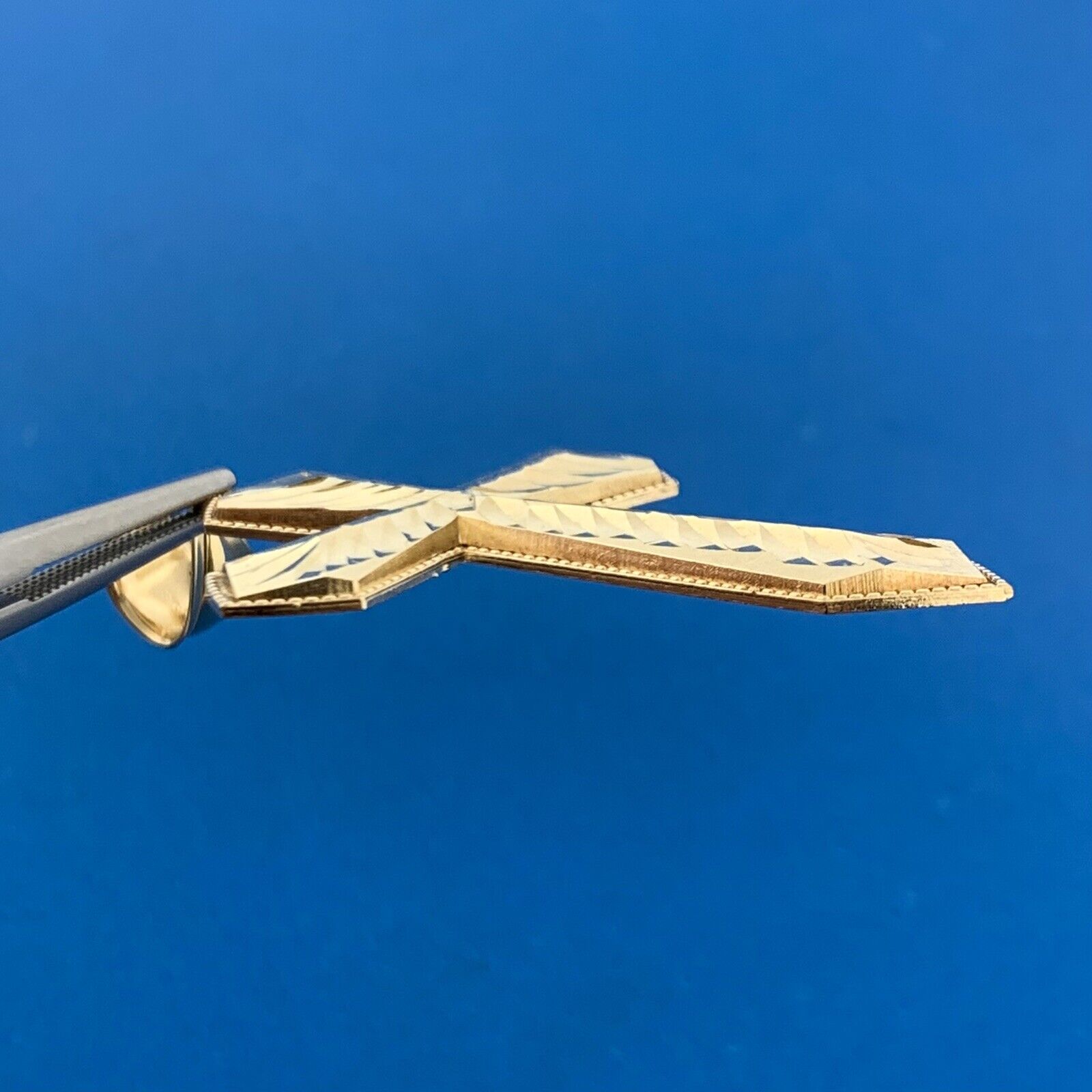 Designer 10K Yellow Gold Diamond Cut Textured Statement Cross Pendant