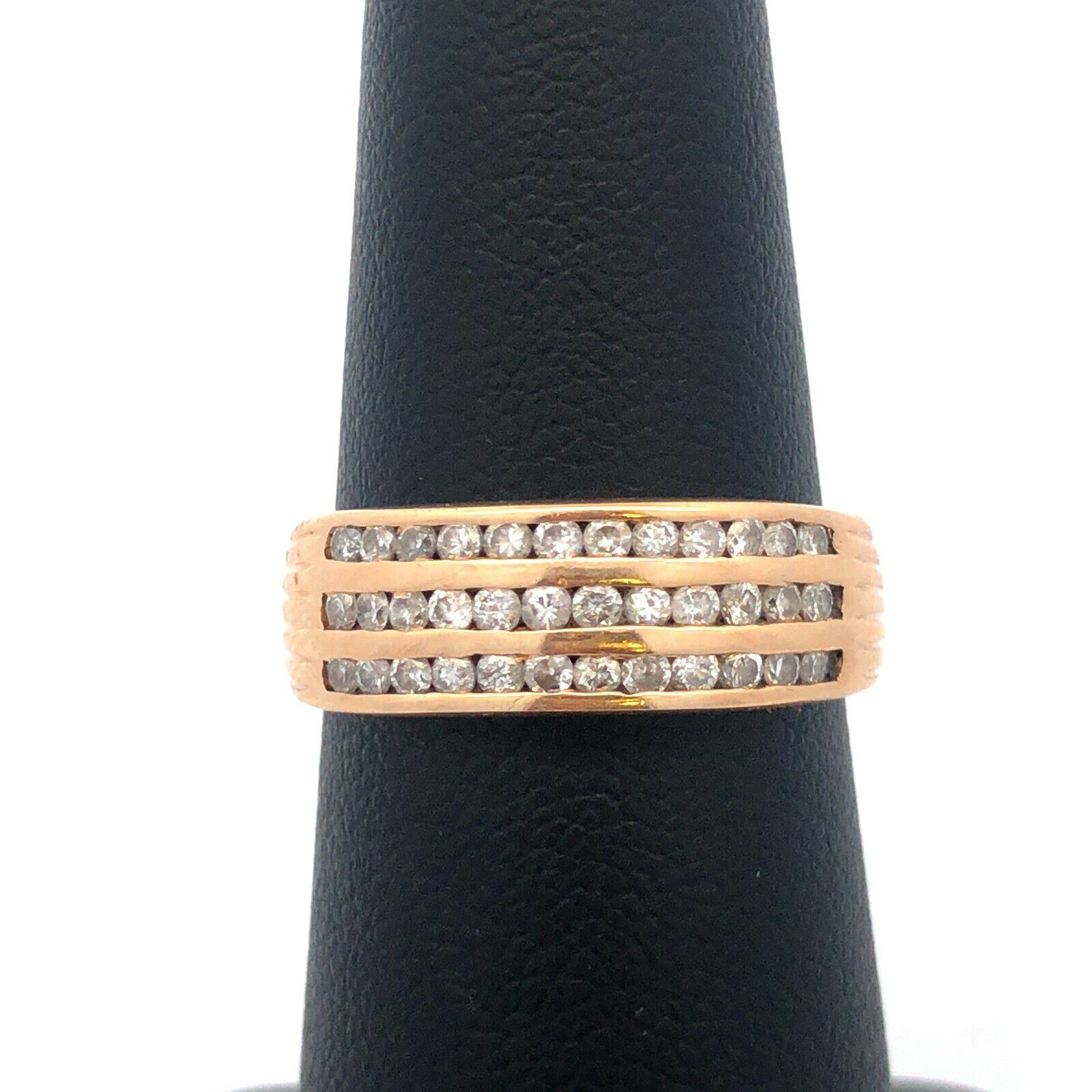 Designer 10K Yellow Gold Diamond Triple Row Tapered Bridal Cocktail Ring