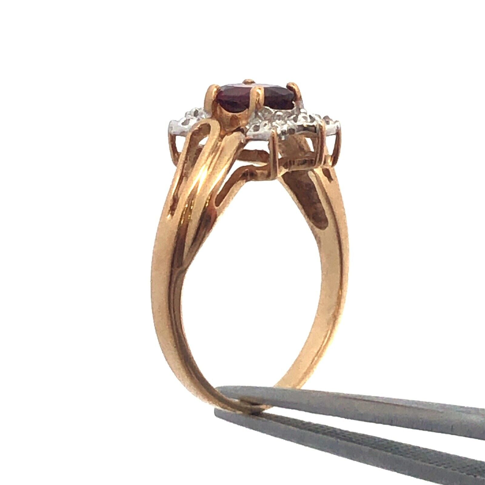 - Designer 10K Yellow Gold Garnet Oval Diamond Accented January Anniversary Ring