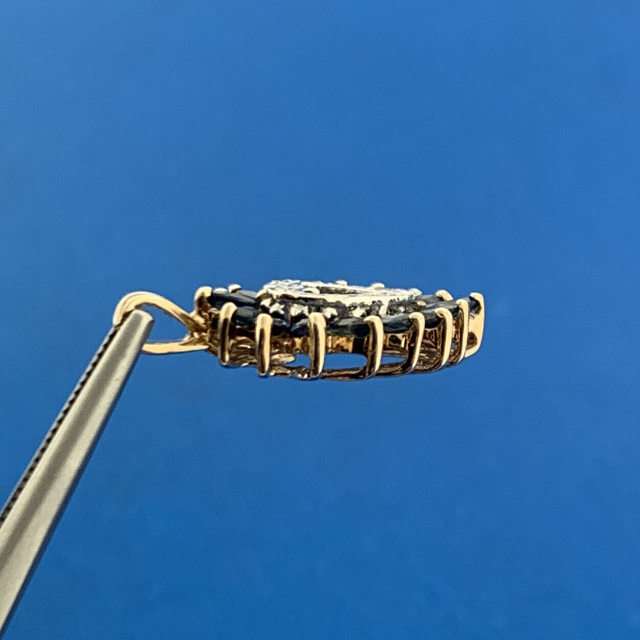 Designer 10k Yellow Gold Marquise Blue Sapphire Diamond Accent Heart Pendant