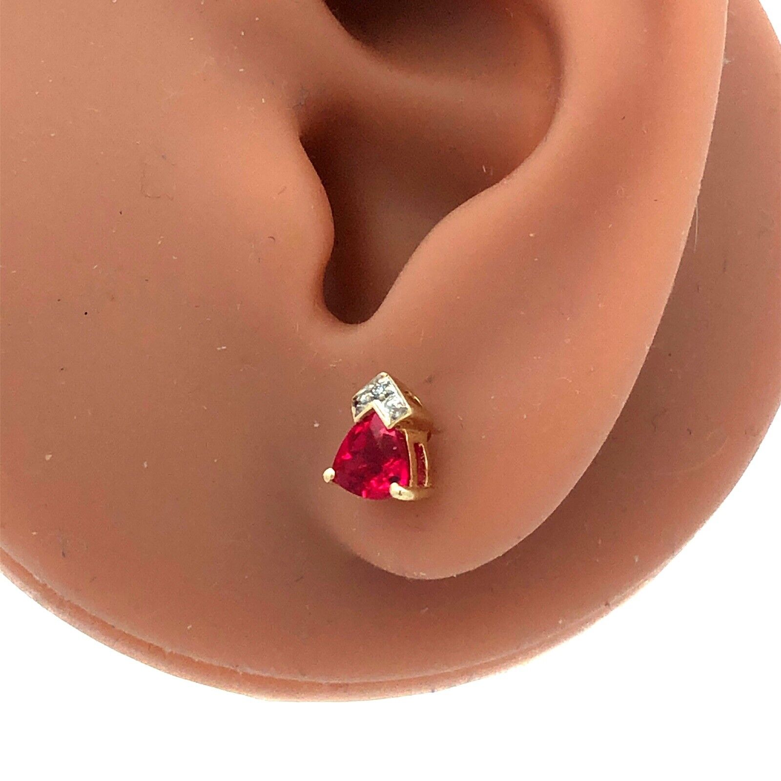 Designer 10K Yellow Gold Trillion Ruby Diamond Accent Stud Earrings
