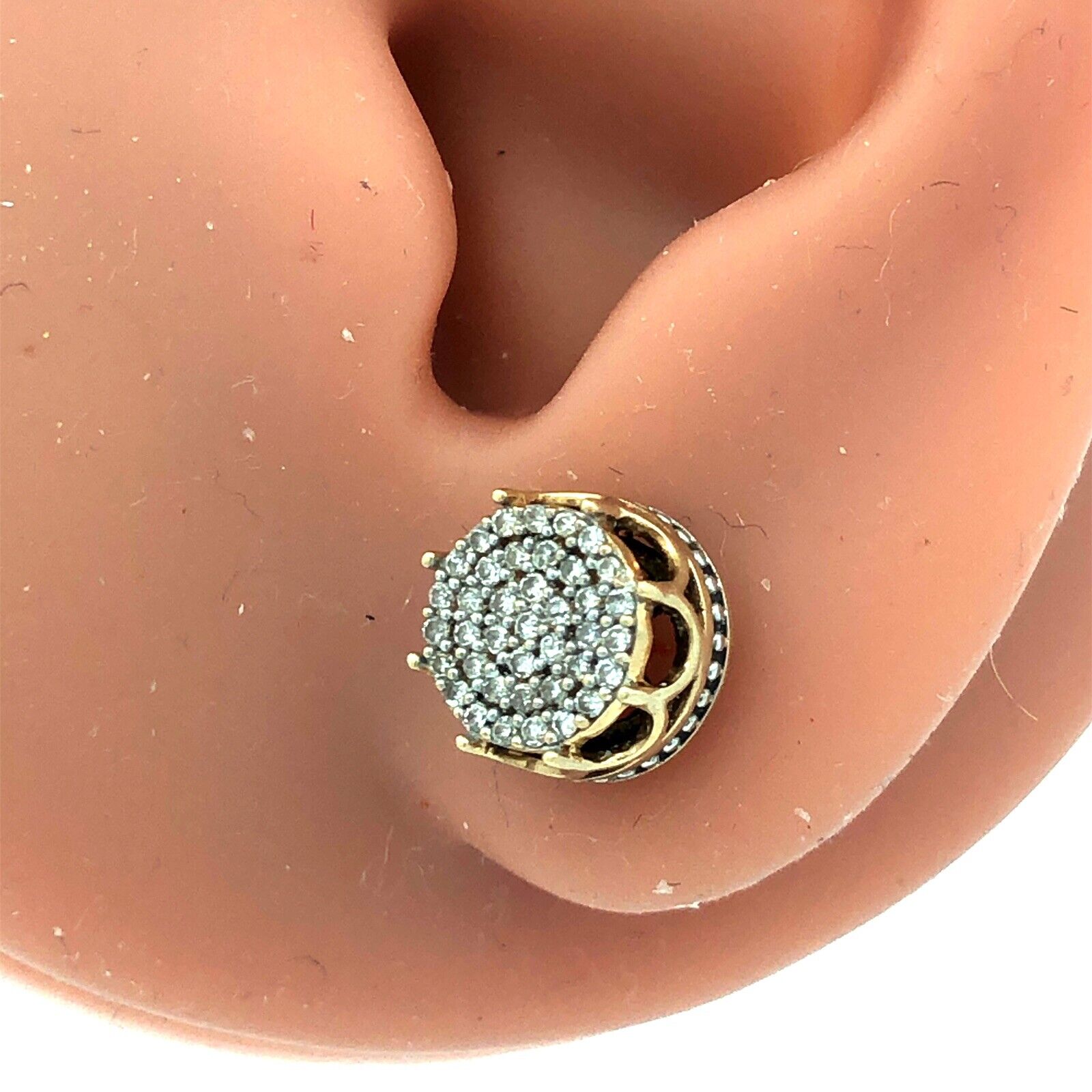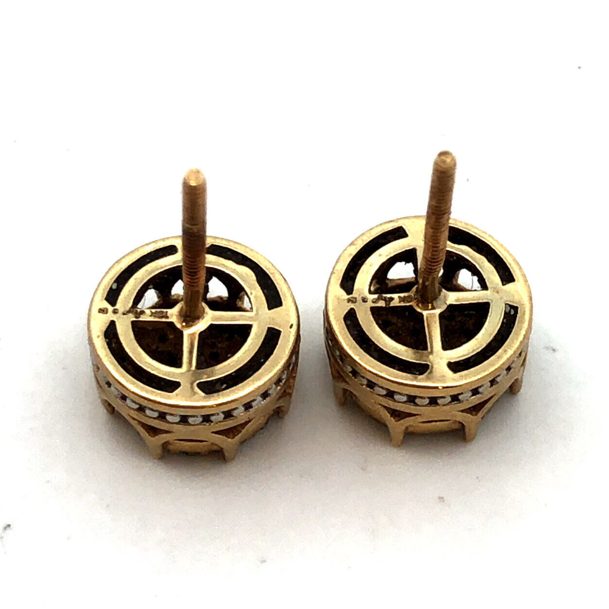 - Designer 10K Yellow White Gold Pave Diamond Screw Back Stud Earrings
