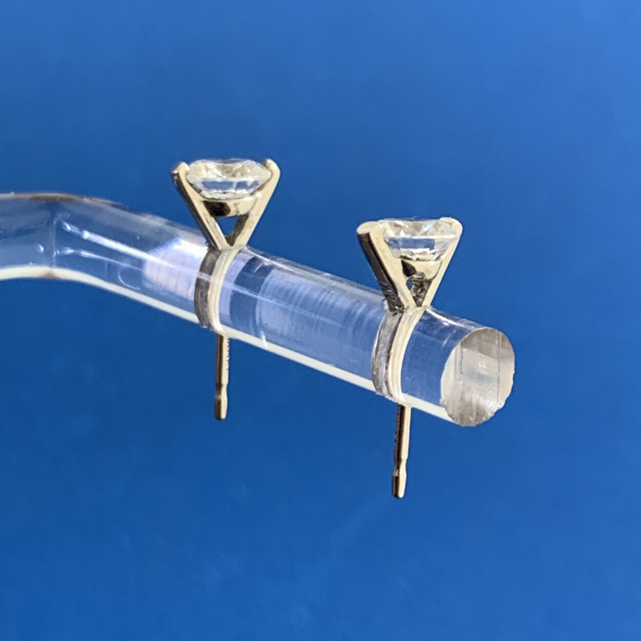 - Designer 14K White Gold Cubic Zirconia CZ Solitaire Stud Earrings