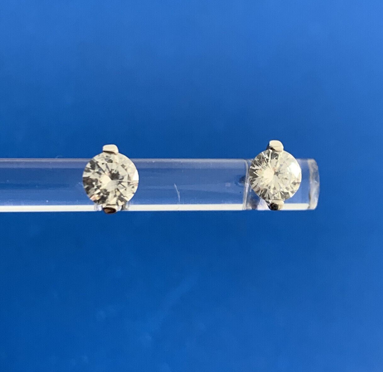 - Two Cubic Zirconia measure approximately 5.0 mm each, approx. 1/2 carat each