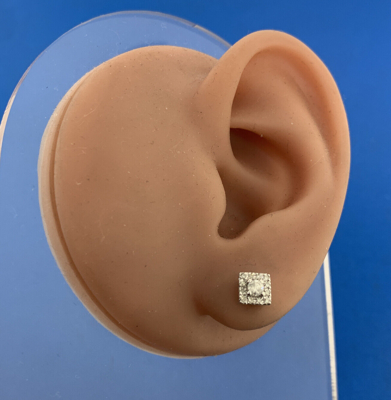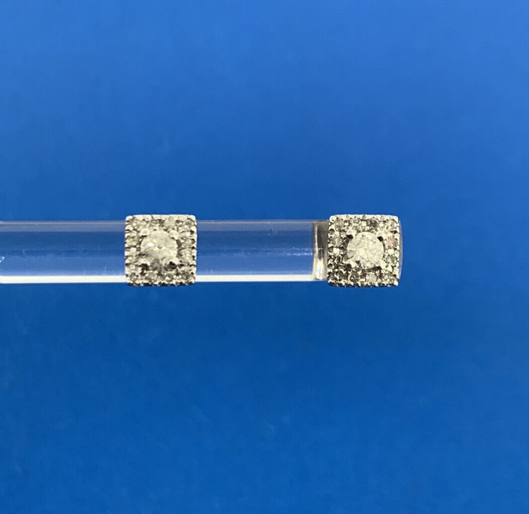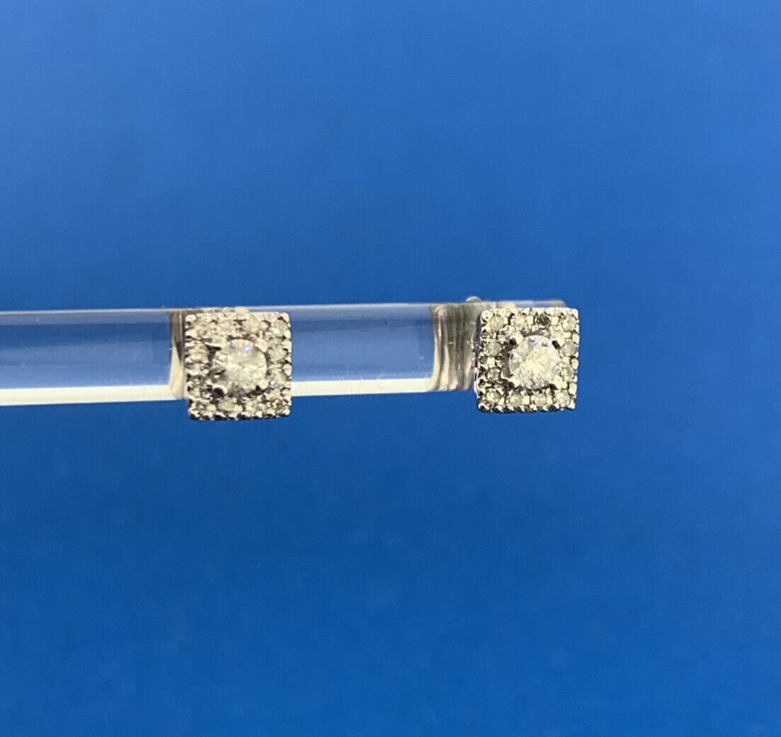 - Designer 14K White Gold Diamond Solitaire With Halo Accented Stud Earrings