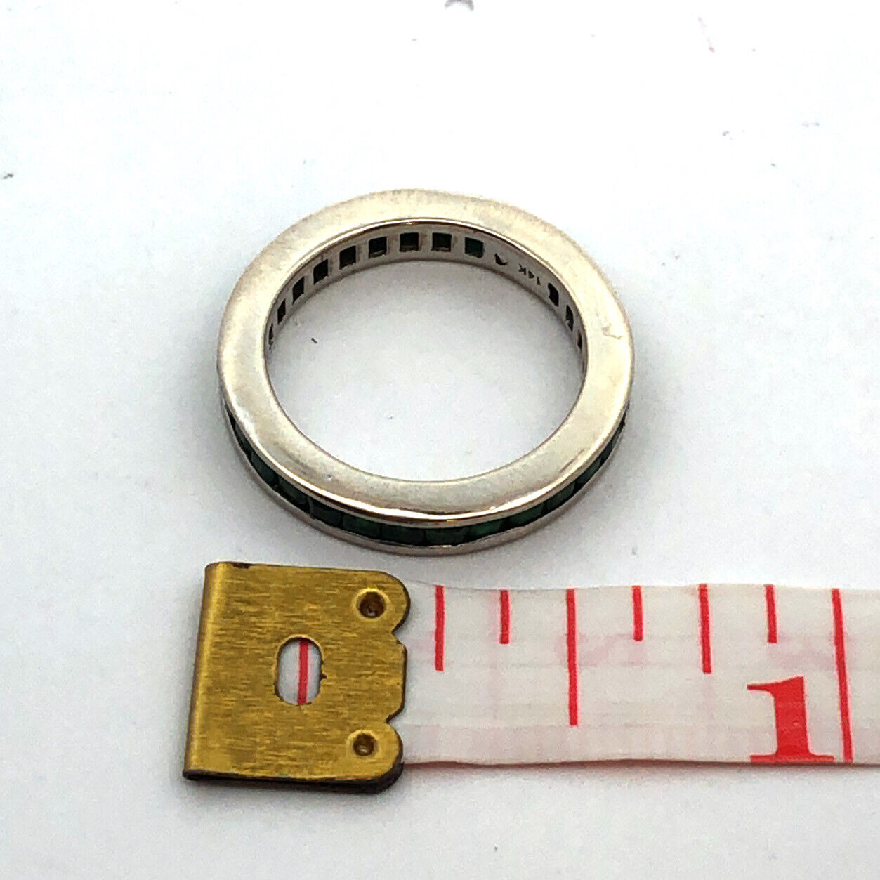 - Designer 14K White Gold Princess Channel Set Emerald Eternity Band Ring