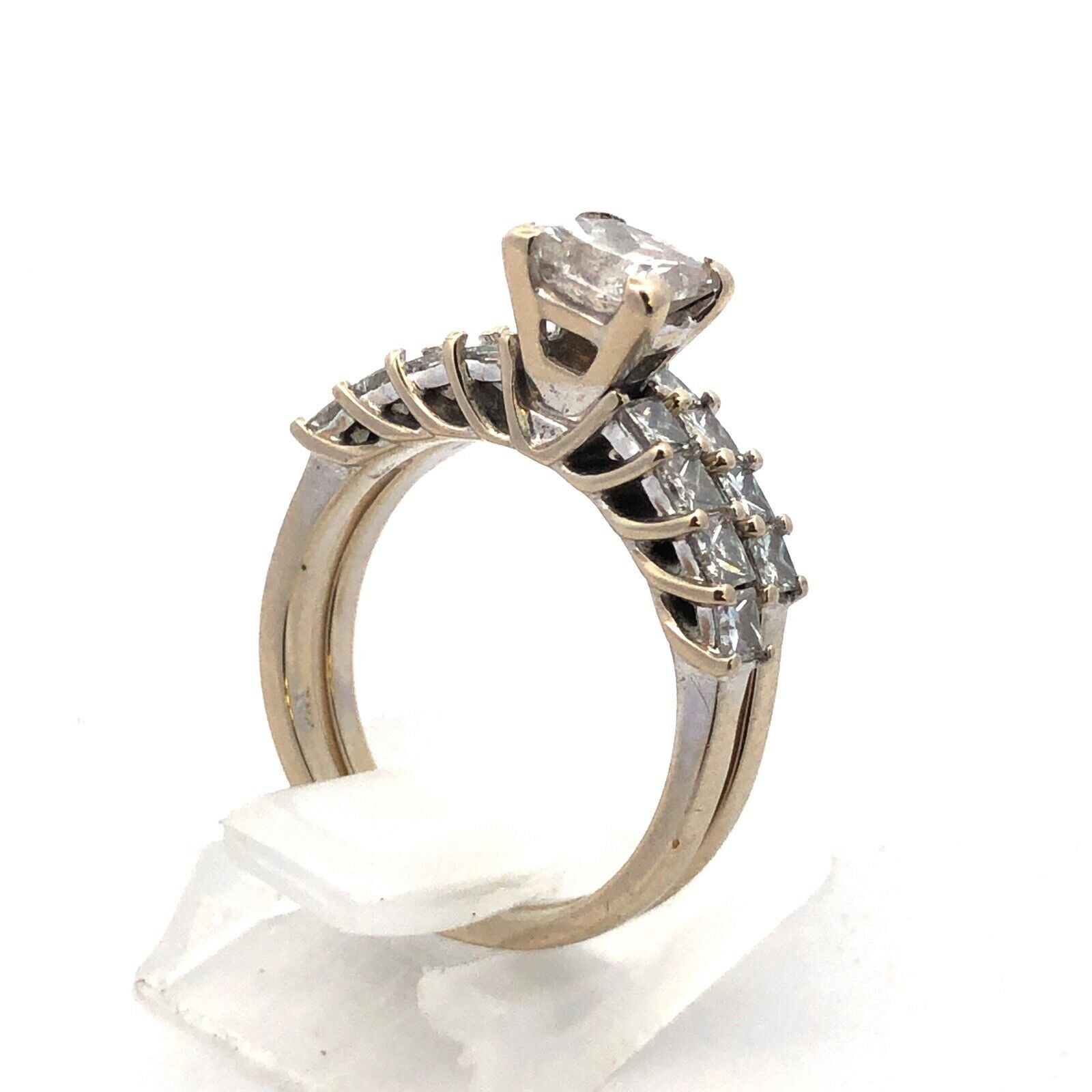 - Designer 14K White Gold Princess Diamond Solitaire W/Accents Two Ring Bridal Set