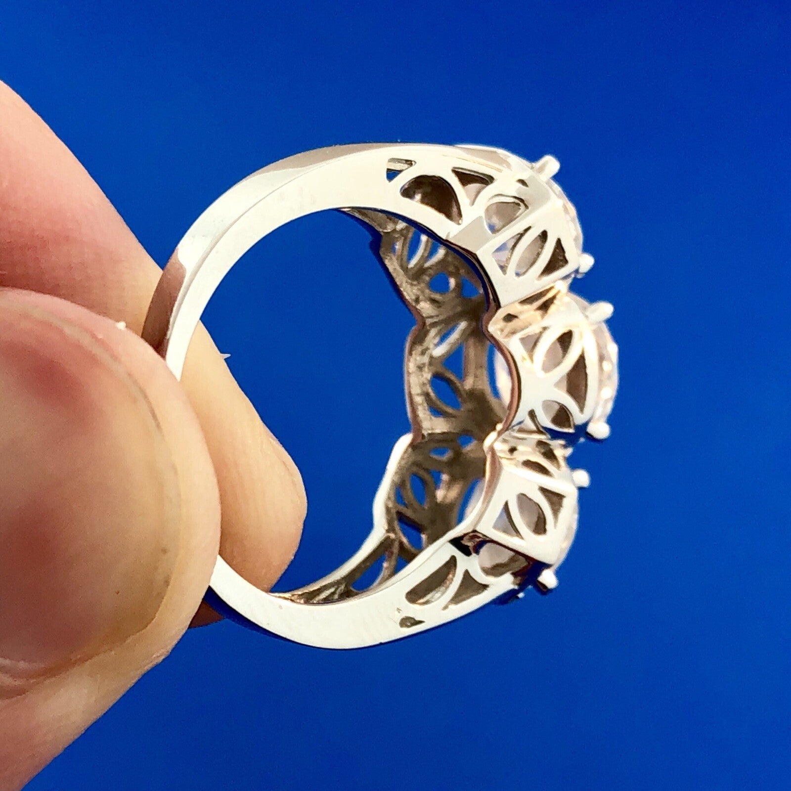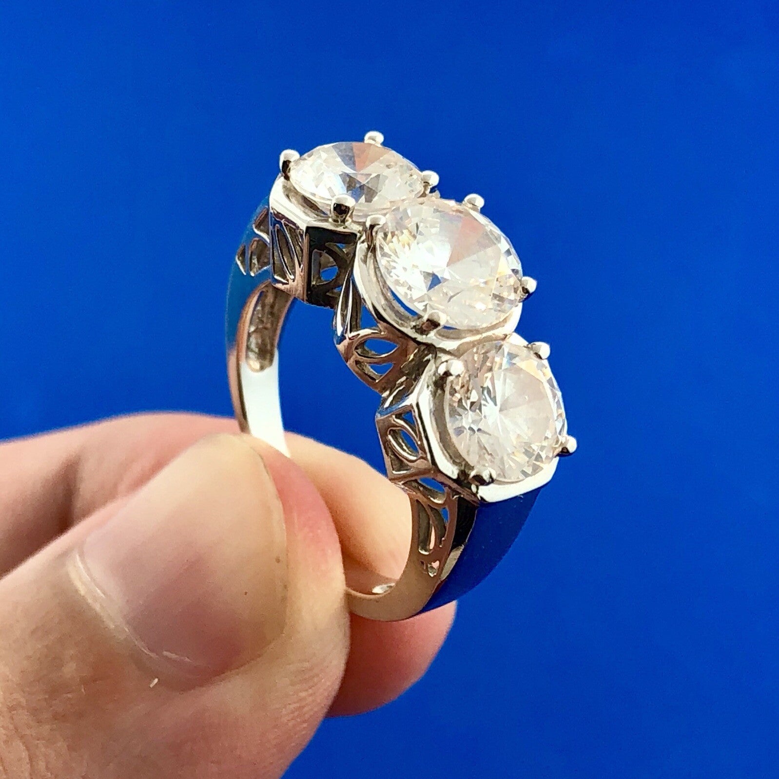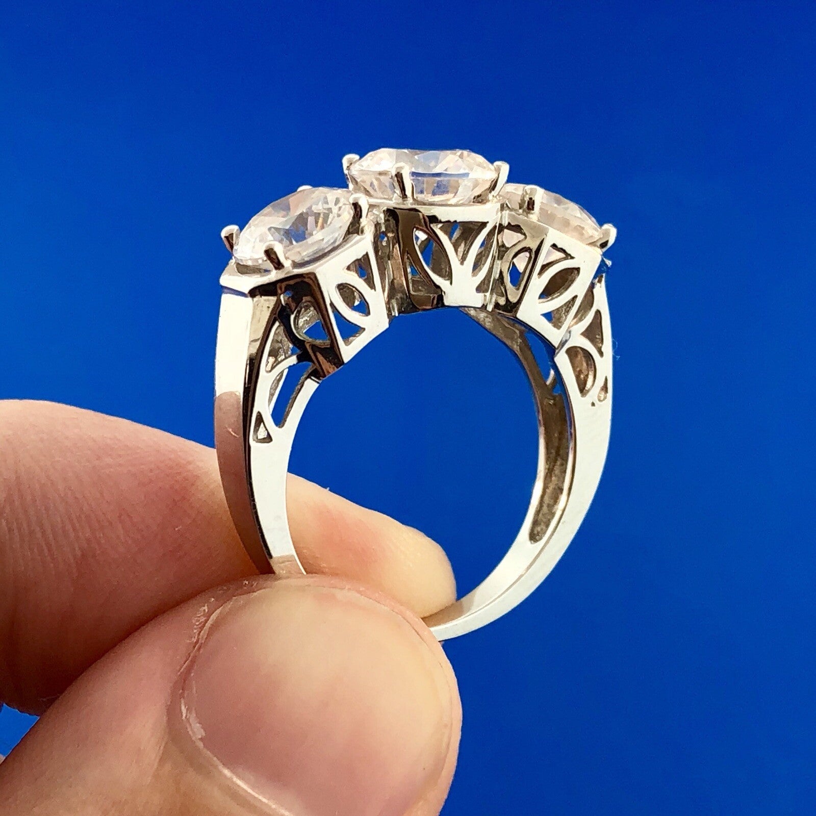 Designer 14k White Gold Ring with Three Round CZ Cubic Zirconia Size 5.25