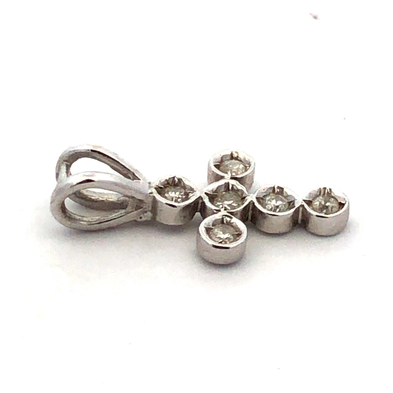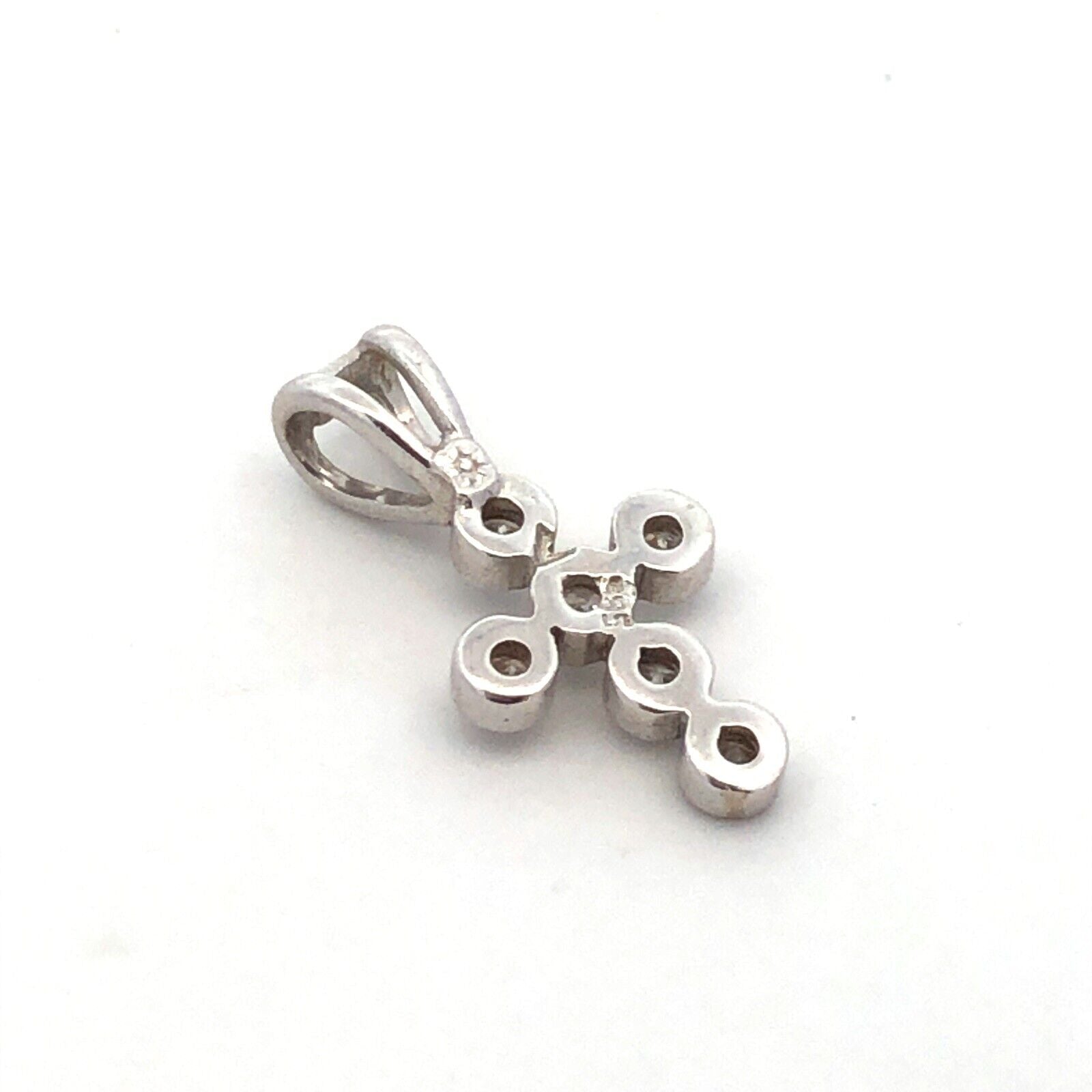 Designer 14K White Gold Round Diamond Bezel Petite Religious Cross Pendant