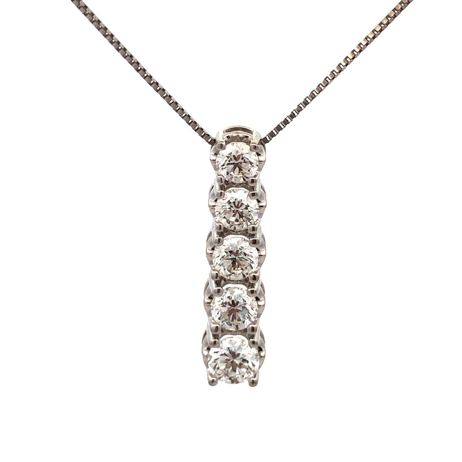 Designer 14K White Gold Round Diamond Graduated Bar Pendant Necklace