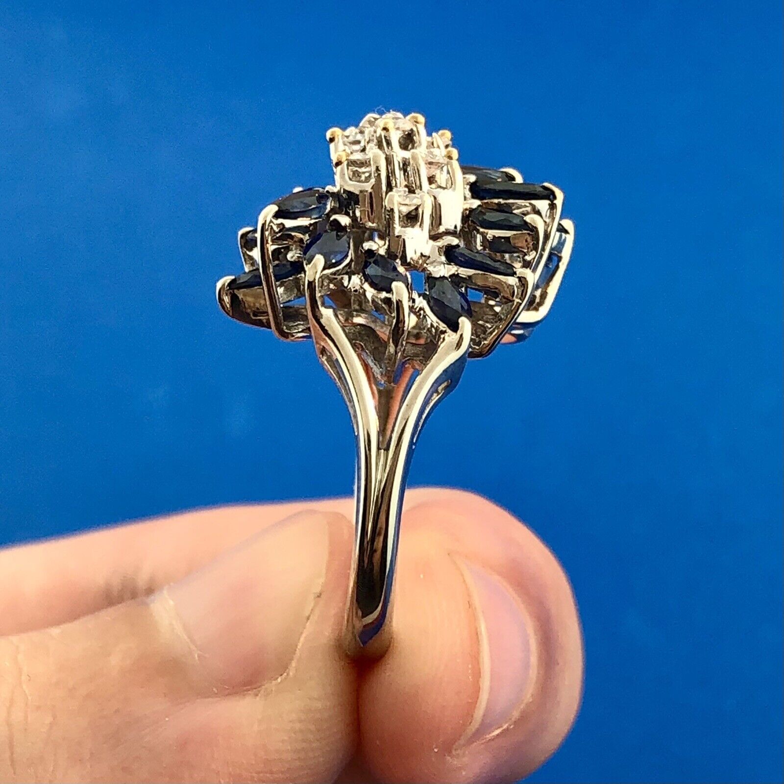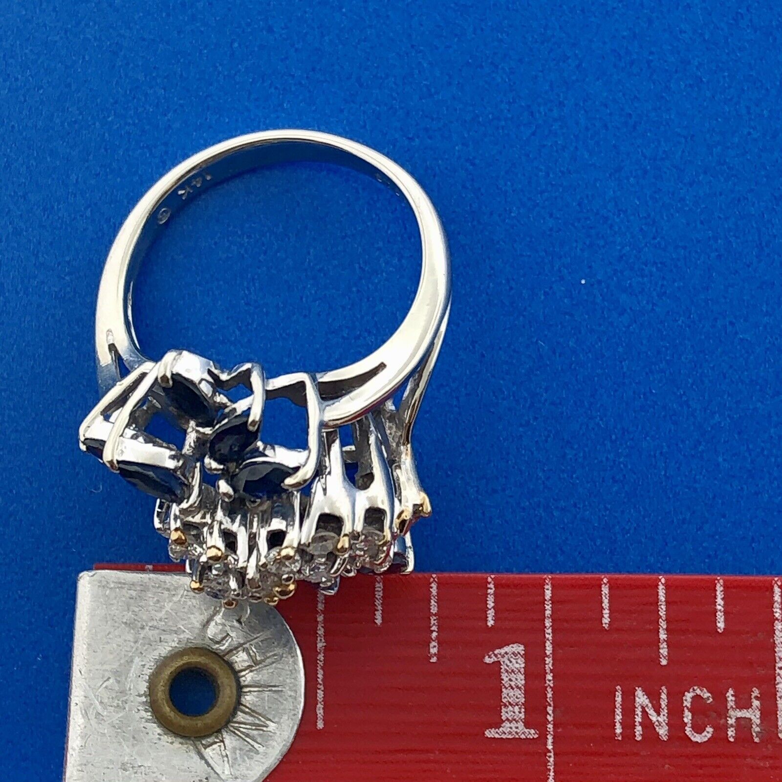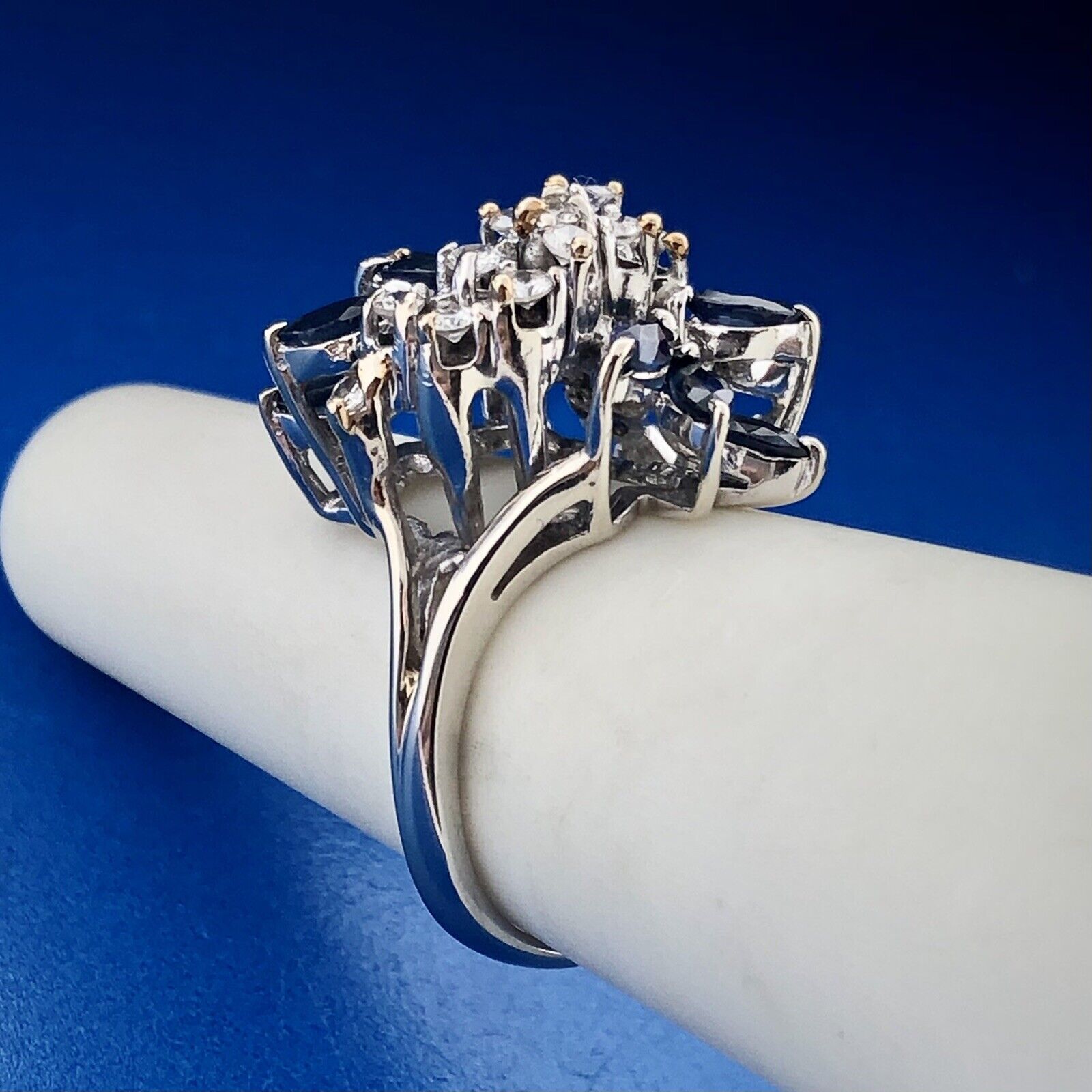 - Designer 14K White Gold Sapphire Diamond Starburst Waterfall Anniversary Ring