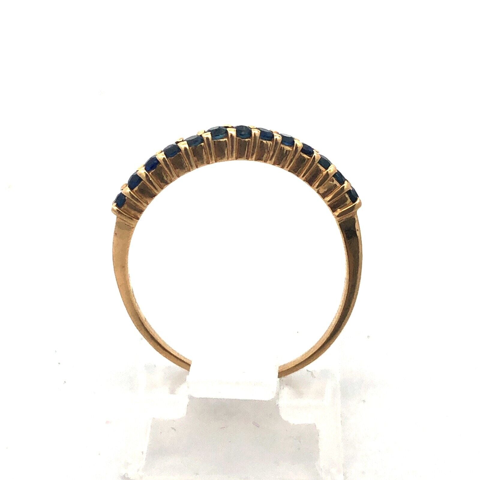 - Designer 14K Yellow Gold Blue Sapphire Stackable Wave Band Ring