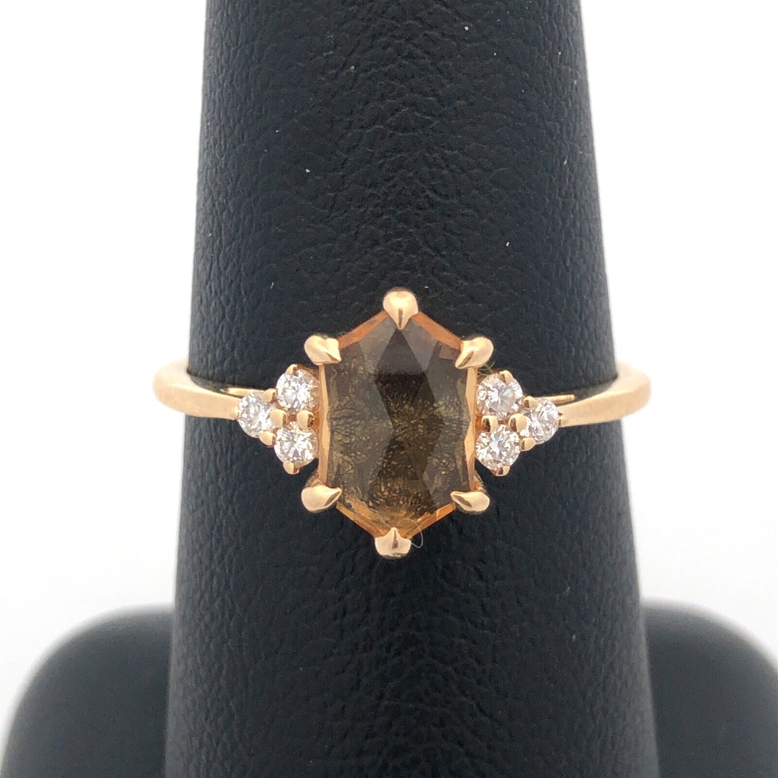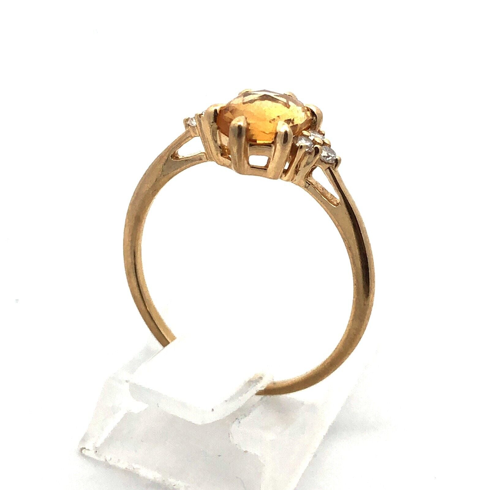 - Designer 14K Yellow Gold Citrine Diamond Accented Cocktail Size 7.5 Ring
